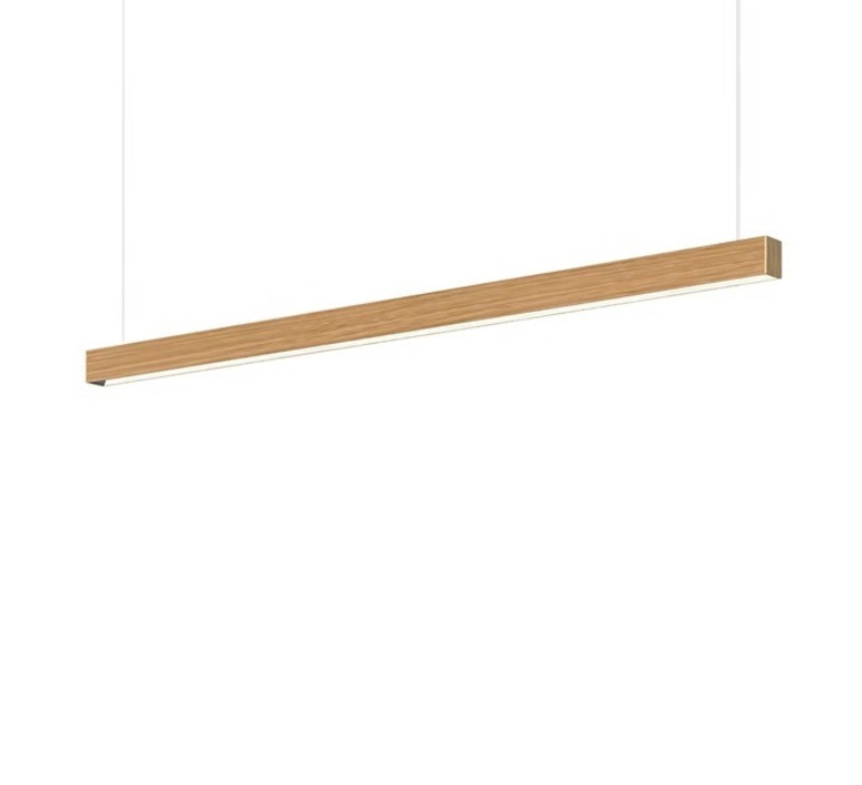 Der Square ist aus Eichenholz gefertigt und hat eine lange, schlichte Form. Sein flaches, quadratisches Profil passt in eine moderne Einrichtung, über einen Esstisch oder eine Arbeitsplatte. Das Holz sorgt für eine visuelle Wärme, während der Mikro-Prismendiffusor einen Lichtkomfort gewährleistet, der sich für Wohn- oder Arbeitsbereiche eignet.