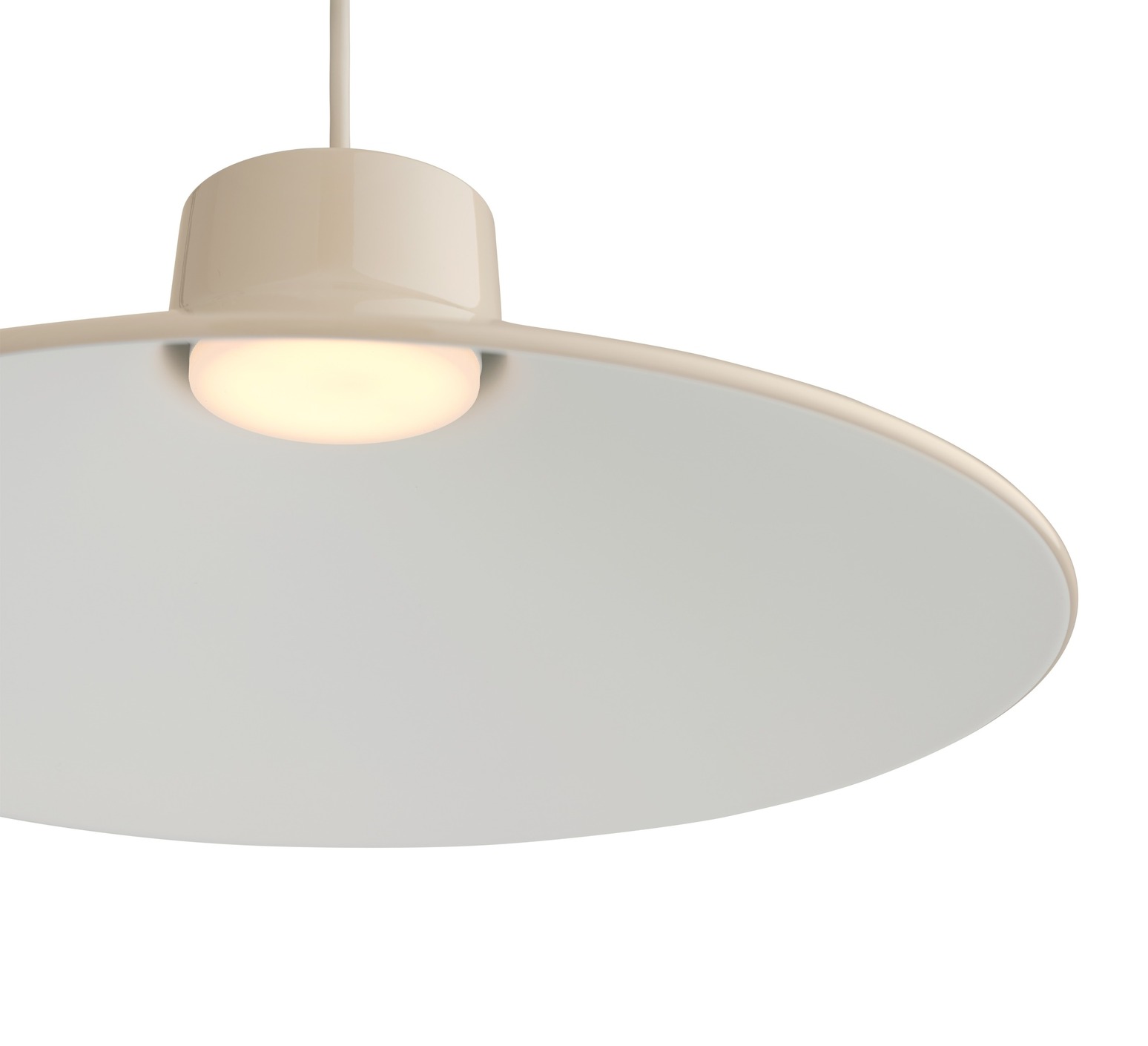Entdecken Sie die Hängeleuchte Top mit 36 cm Durchmesser und sandfarbener Oberfläche, die vom Schweizer Studio Big-Game für das dänische Haus Muuto entworfen wurde.