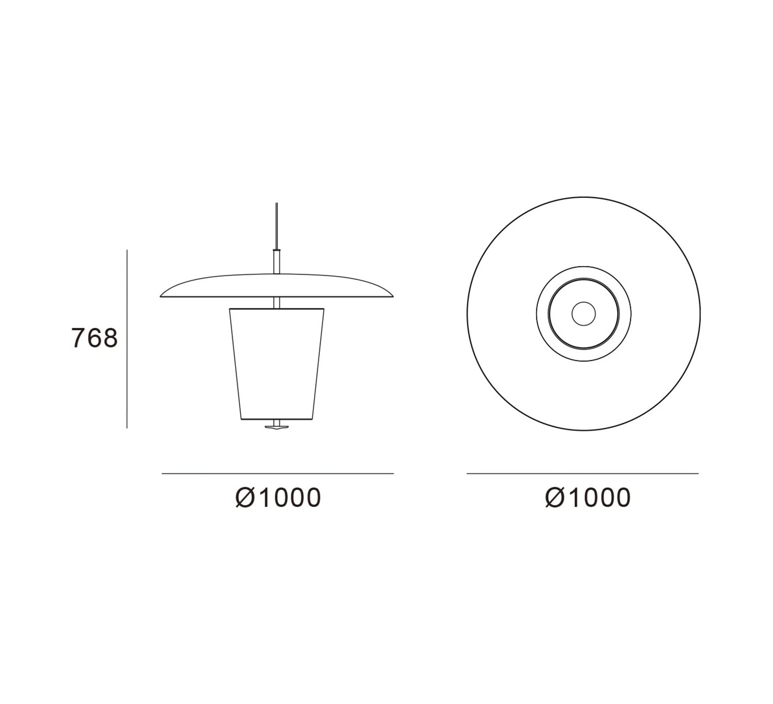 Die Hängeleuchte Toton 1000 hat einen Durchmesser von 100 cm und eine Höhe von 76,8 cm und ist aus Aluminium und Textilien gefertigt. Sie strahlt ein 360°-Licht aus, ist nicht dimmbar und wird mit sechs E14-Glühbirnen (max. 40 W, nicht im Lieferumfang enthalten) betrieben, die für ihre Verwendung erforderlich sind. Sie ist mit einem 6 m langen schwarzen Textilkabel und einer passenden Rosette für eine harmonische Installation ausgestattet.