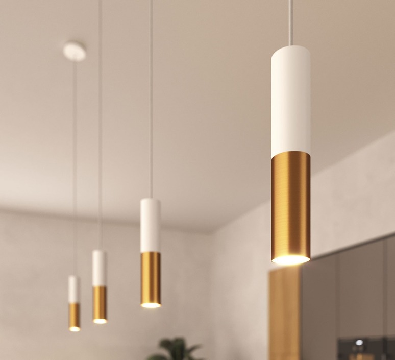 Hängeleuchte, Tub-E14, matt weiß, satinierte Bronze, Ø6cm, H30,6cm - Creative Cables