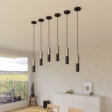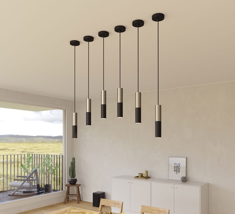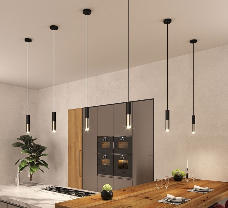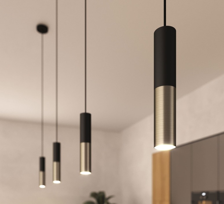 Bestehend aus einem doppelten Lampenschirm aus schwarzem Metall und satiniertem Titan, spielt diese Pendelleuchte mit dem Kontrast zwischen Licht und Schatten. Ihr schlankes röhrenförmiges Design schafft eine grafische und minimalistische Atmosphäre, die sich perfekt über einer Arbeitsplatte, einem Essbereich oder einer Bar eignet. Die Kombination aus mattem und satiniertem Metall reflektiert das Licht auf subtile Weise und verstärkt den anspruchsvollen Charakter des Raumes. Inspiriert von der industriellen Welt, passt sie sowohl in eine schlichte Einrichtung als auch in ein raueres Ambiente und verleiht einen zeitlosen Hauch von Modernität.