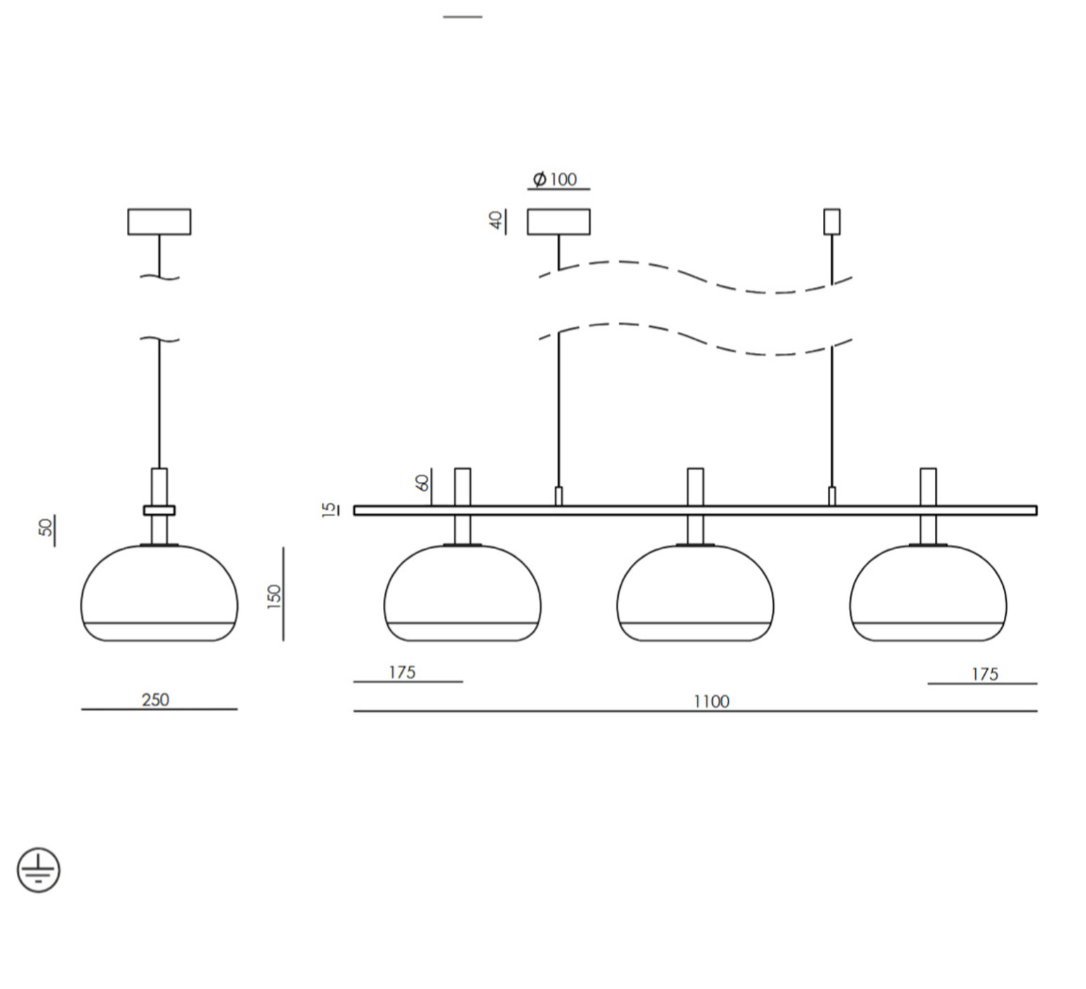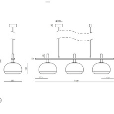 Technisch gesehen enthält der Kronleuchter drei 5W-G9-Glühbirnen, die ein Gesamtlicht von 1350 lm bei 2700 K verbreiten und eine hochwertige, diffuse 360°-Beleuchtung bieten. Sie ist Triac-dimmbar, hat einen festen Öffnungswinkel, wird aufgesetzt montiert und enthält eine Rosette. Ihre Abmessungen (L110 cm, H27,5 cm) garantieren ein perfektes Gleichgewicht zwischen dekorativer Präsenz und Funktionalität.