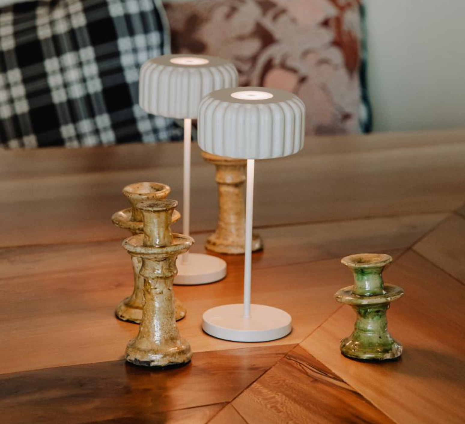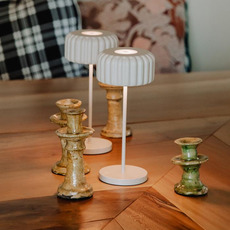 Sie kann innerhalb von 8 Stunden in der mitgelieferten Ladestation aufgeladen werden und lässt sich auch mit einer Steckdose und einem USB-C-Kabel (90 cm lang) verwenden, wodurch sie flexibel in Ihrer Inneneinrichtung eingesetzt werden kann. Die Lampe Dentelles Bistro hat eine Leuchtdauer von 8 Stunden bei hoher Intensität bis zu 40 Stunden bei niedriger Intensität.