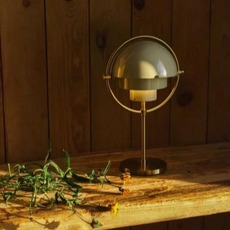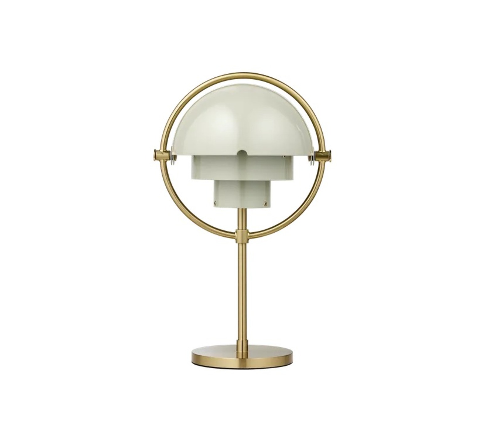 Die Multi-Lite-Kollektion wurde 1972 zum ersten Mal entworfen, als Louis Weisdorf eine Ausnahme von seiner eigenen Designgewohnheit machte, mehrere sich wiederholende Elemente zu verwenden. Sie spiegelt seine Leidenschaft für Vielfalt wider. Die Multi-Lite Tischlampe hat zwei individuelle, drehbare Lampenschirme und kann in zahlreiche Kombinationen verwandelt werden, bei denen das Licht nach oben oder unten gerichtet werden kann oder ein asymmetrisches, künstlerisches Licht ausstrahlt.