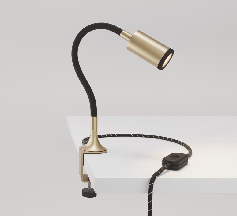 Der MAG-Y ist kompakt und präzise und kombiniert einen röhrenförmigen Körper aus satiniertem Bronzemetall mit einem flexiblen, mit Stoff ummantelten Arm. Ihr grafisches Aussehen passt ebenso gut auf einen Schreibtisch, in ein Regal oder an das Kopfende eines Bettes und sorgt für eine gezielte Beleuchtung zum Lesen oder zur Hervorhebung eines Objekts. Die Metallklemme und der Magnetfuß ermöglichen eine einfache Befestigung und Neupositionierung und machen die Leuchte zu einer mobilen und dekorativen Lösung.