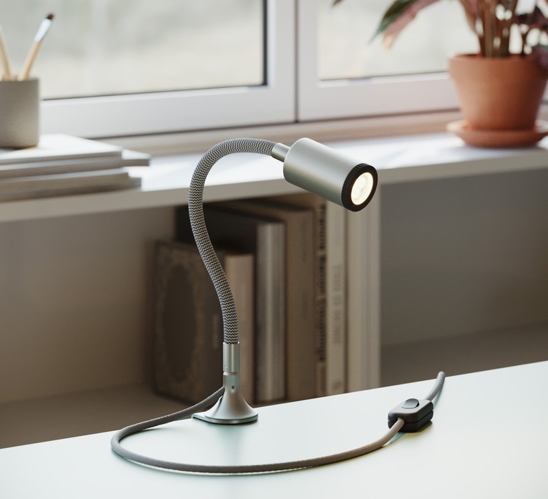 Der MAG-Y ist kompakt und präzise und kombiniert ein röhrenförmiges Gehäuse aus satiniertem Titanmetall mit einem flexiblen, stoffummantelten Arm. Ihr grafisches Aussehen passt ebenso gut auf einen Schreibtisch, in ein Regal oder an das Kopfende eines Bettes und sorgt für eine gezielte Beleuchtung zum Lesen oder zur Hervorhebung eines Objekts. Die Metallklemme und der Magnetfuß ermöglichen eine einfache Befestigung und Neupositionierung und machen die Leuchte zu einer mobilen und dekorativen Lösung.