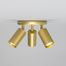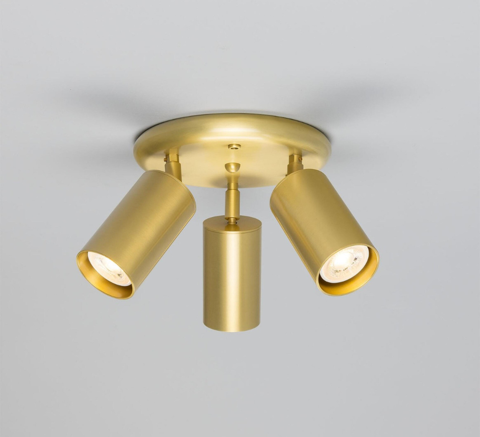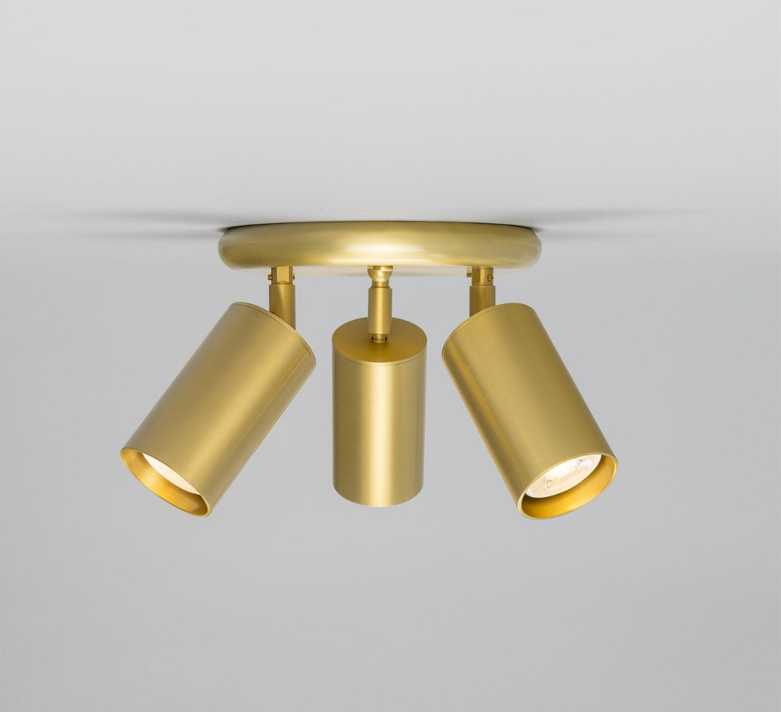 Jeder zylindrische Strahler aus satiniertem Messing ist an einem verstellbaren Schwenkarm angebracht, der eine präzise gerichtete Beleuchtung ermöglicht. Das einfache und kompakte Design passt in Küchen, Büros, Flure oder Wohnzimmer und das elegante Finish harmoniert mit verschiedenen Einrichtungsstilen. Die verstellbare Ausrichtung bietet Flexibilität und Anpassungsfähigkeit je nach Beleuchtungsbedarf.
