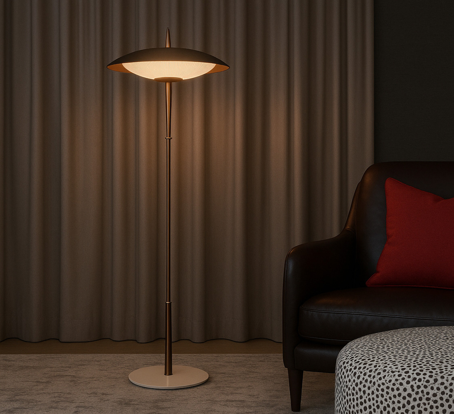 Diese Stehleuchte ist für den Innenbereich konzipiert und verfügt nicht über eine Dimmfunktion. Ihr innovatives Design und der Art-Deco-Stil machen diese Leuchte zu einem vollwertigen Dekorationsobjekt.