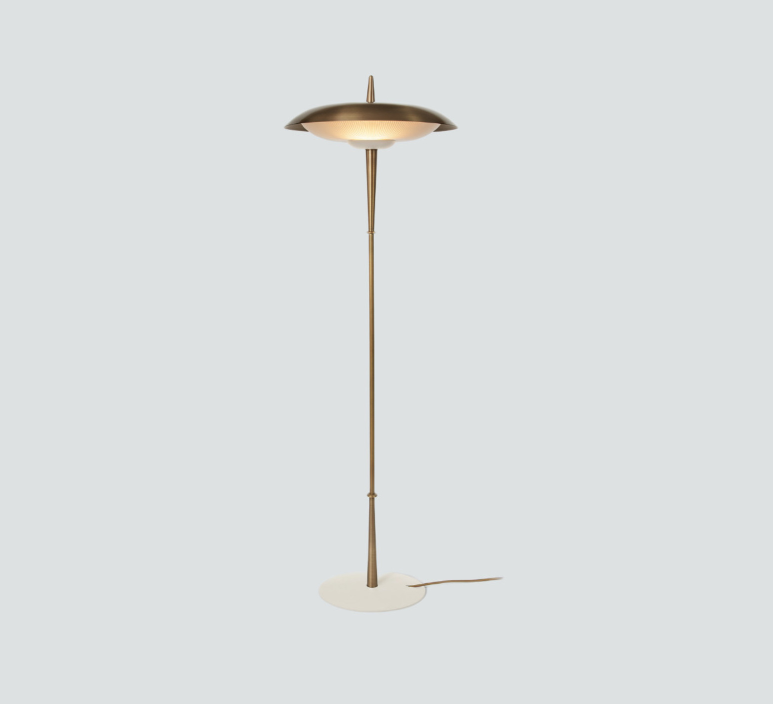 Ihr raffiniertes Design und die edlen Materialien, wie antikes Messing und Glas, verleihen ihr ein zeitloses Aussehen. Ihr cremefarbener Sockel zieht die Blicke auf sich und setzt einen subtilen Farbakzent. Diese Stehleuchte wird Ihr Zuhause erhellen und ihm gleichzeitig einen Hauch von Raffinesse verleihen.