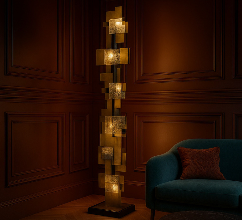 Mit einem Durchmesser von 28cm und einer Höhe von 166cm verleiht sie jeder Einrichtung einen Hauch von Raffinesse. Ihr kubisches Design und die Messingfarbe machen sie zu einem vollwertigen Dekorationsobjekt. Stellen Sie sie neben einen Sessel oder in eine Ecke Ihres Wohnzimmers, um eine warme und raffinierte Atmosphäre zu schaffen. Die grafischen Linien der Stehleuchte Langham passen perfekt zu modernen oder zeitgenössischen Möbeln.