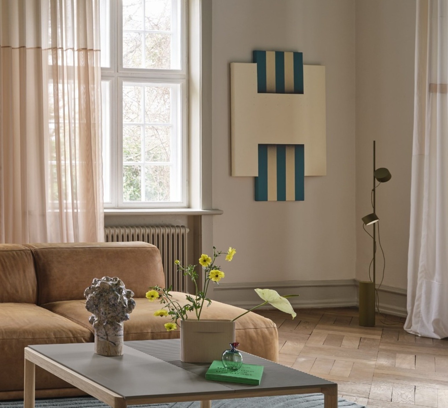Post ist die neue Stehleuchte, die 2020 von den Earnest Studios für das niederländische Haus Muuto entworfen wurde. Eine grafische und äußerst elegante Leuchte mit LED-Modul. Eine grün-braune Farbe, die trotz ihres Charakters Trost spendet. Sanft an einen Scheinwerfer erinnernd, verbreitet sie eine moderne Atmosphäre.