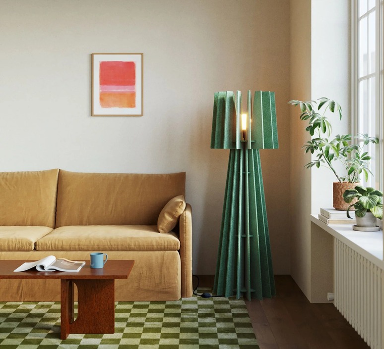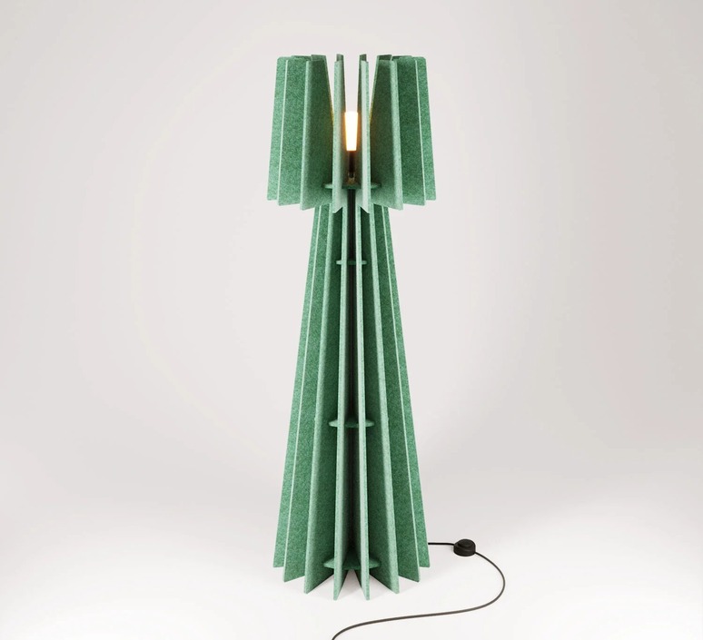 Diese Stehleuchte findet ihren Platz in einem Wohnzimmer, einer Leseecke, einem Empfangsraum oder einem Büro, wo man Lichtatmosphäre und akustischen Komfort miteinander verbinden möchte. In der Version "grün mélange" kann sie als Farbtupfer fungieren und sich in ein pflanzliches oder natürliches Dekor einfügen.