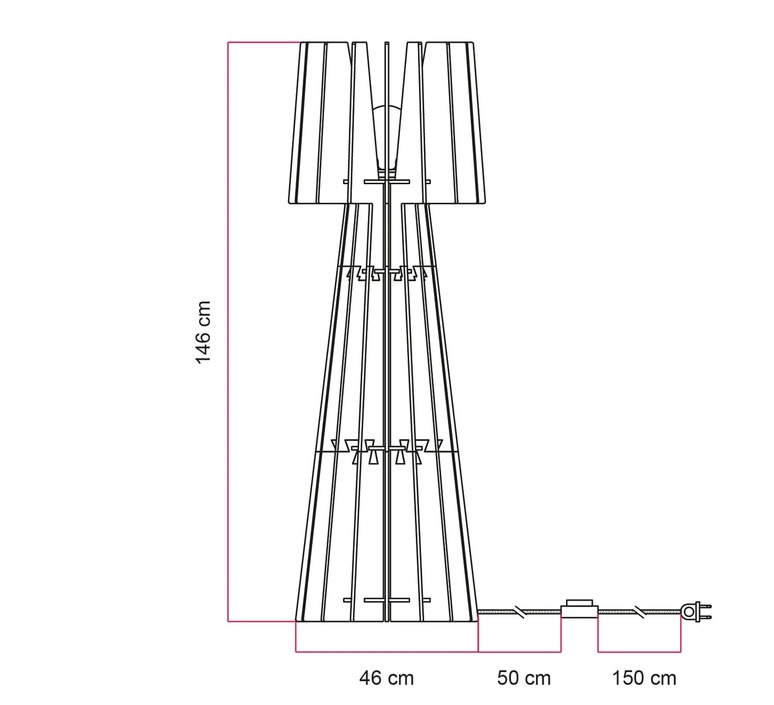Sie ist 146 cm hoch und hat einen Durchmesser von 46 cm. Seine Lichtquelle (1 x E27) ist nicht im Lieferumfang enthalten, aber als unverzichtbares Zubehör erhältlich.