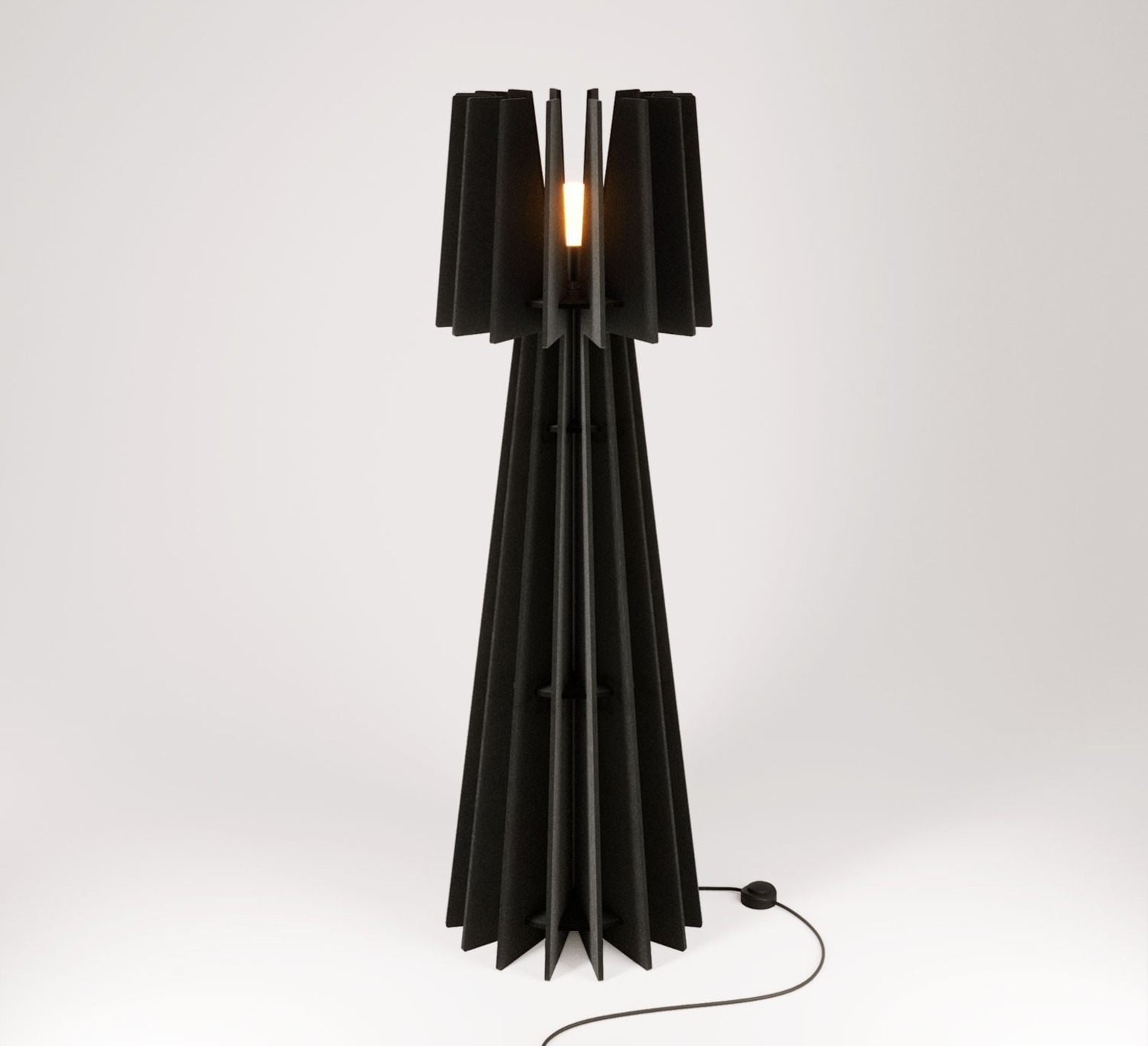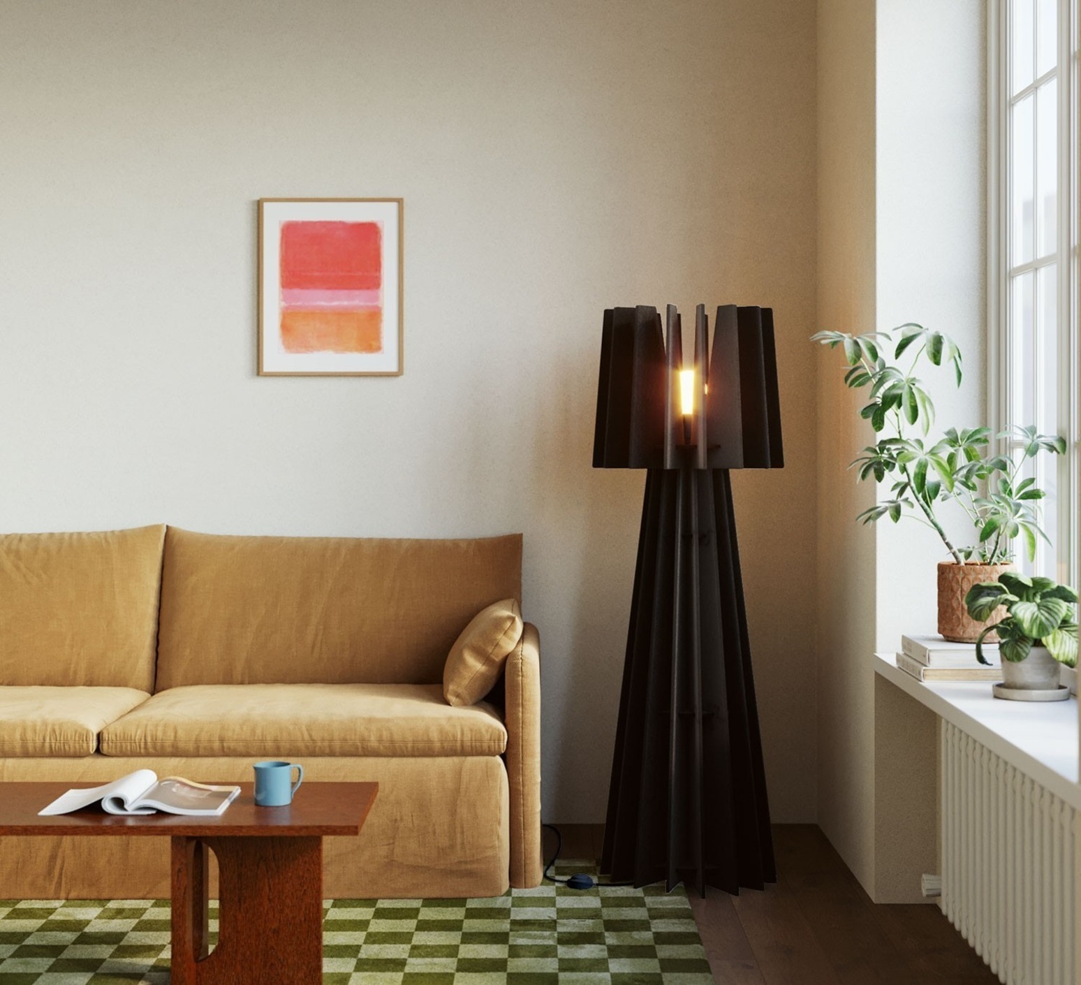 Diese Stehleuchte findet ihren Platz in einem Wohnzimmer, einer Leseecke, einem Empfangsraum oder einem Büro, wo man Lichtatmosphäre und akustischen Komfort miteinander verbinden möchte. In der Version "Schwarz gemischt" kann sie als Farbtupfer fungieren und sich in ein pflanzliches oder natürliches Dekor einfügen.