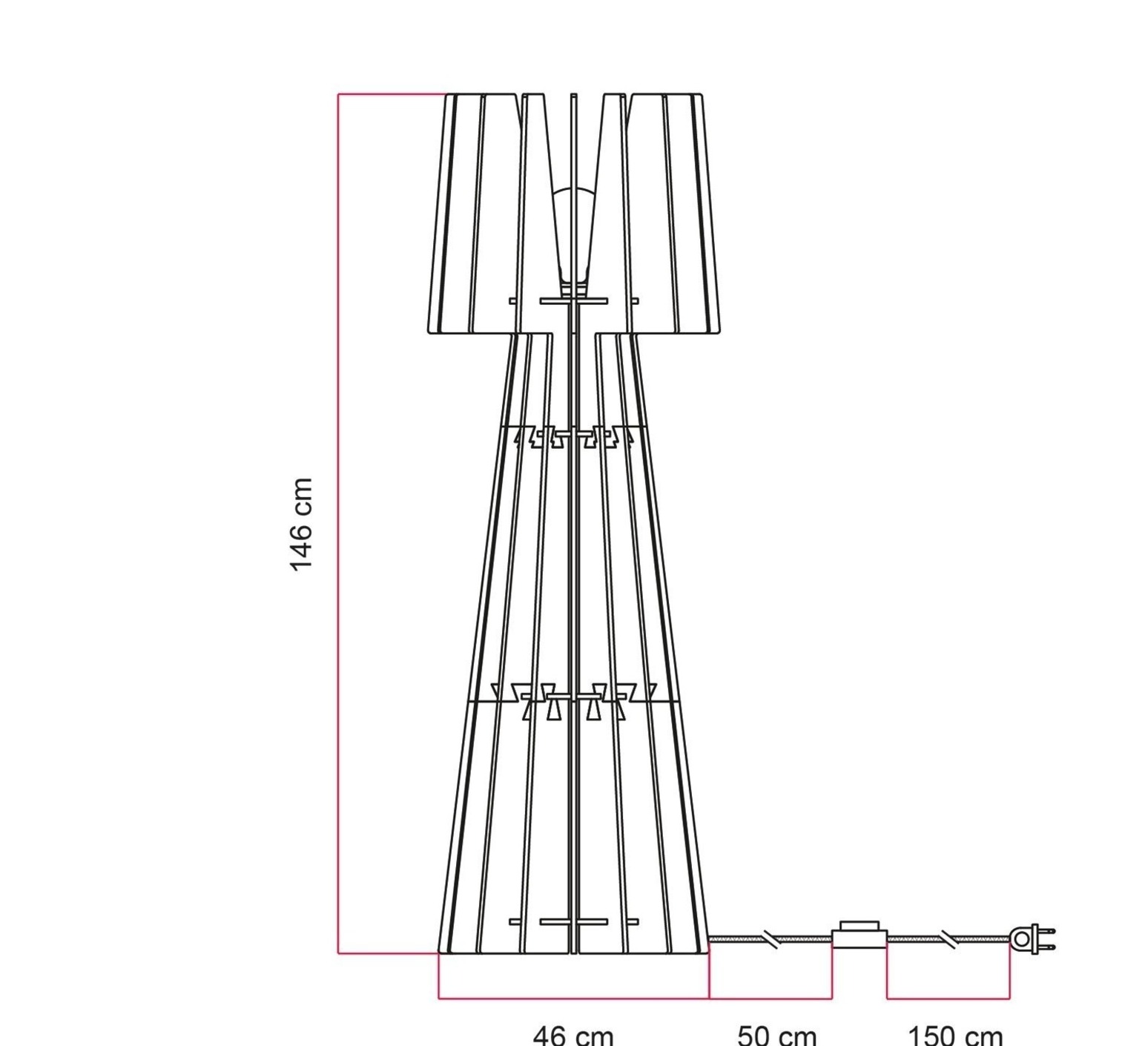 Sie ist 146 cm hoch und hat einen Durchmesser von 46 cm. Seine Lichtquelle (1 x E27) ist nicht im Lieferumfang enthalten, aber als unverzichtbares Zubehör erhältlich.