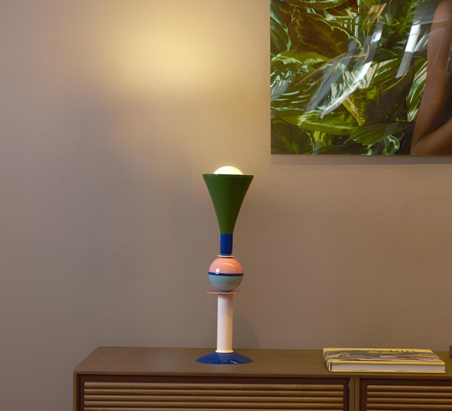 Auf einer Konsole, einem Schreibtisch, einem Nachttisch oder einem Regal platziert, strahlt die Lampe Carmen ein weiches, warmes Licht nach oben ab, das ideal ist, um eine gemütliche und dekorative Atmosphäre zu schaffen. Ihr dynamischer und farbenfroher Stil passt besonders gut zu modernen, eklektischen oder zeitgenössischen Einrichtungen und verleiht dem Raum einen künstlerischen Touch, ohne ihn optisch zu überladen.