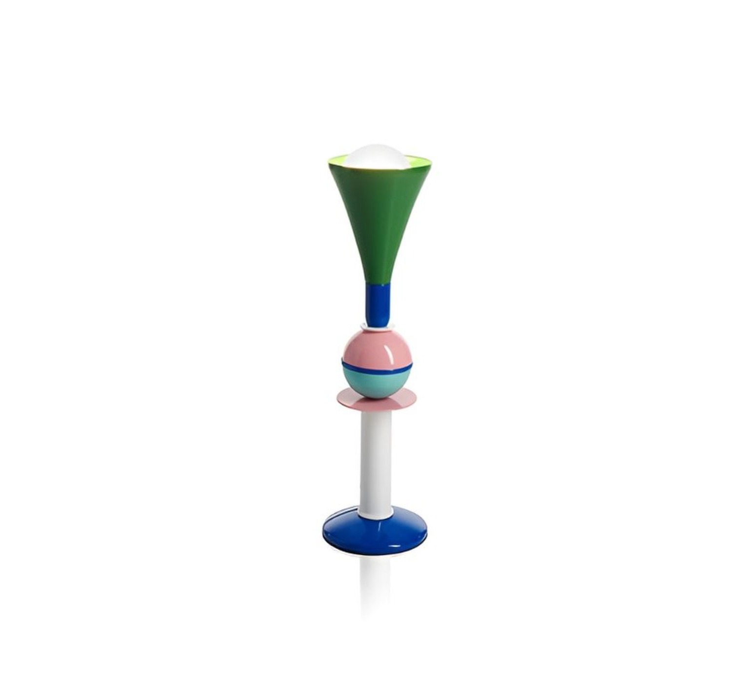 Die Tischlampe Carmen von Slide, entworfen von dem Designer Giò Colonna Romano, veranschaulicht eine zeitgenössische Neuinterpretation des postmodernen italienischen Designs der 70er und 80er Jahre.
