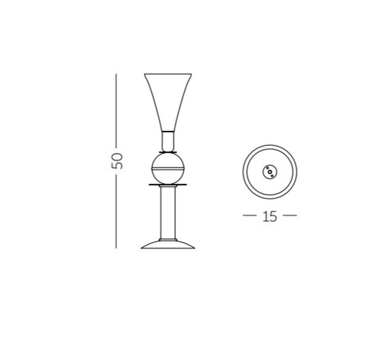 Technisch gesehen besteht diese Lampe aus mehrfarbig lackiertem Aluminium mit einer Höhe von 50 cm und einem Durchmesser von 15 cm. Sie funktioniert mit einer E27-Glühbirne, die im Lieferumfang enthalten ist.