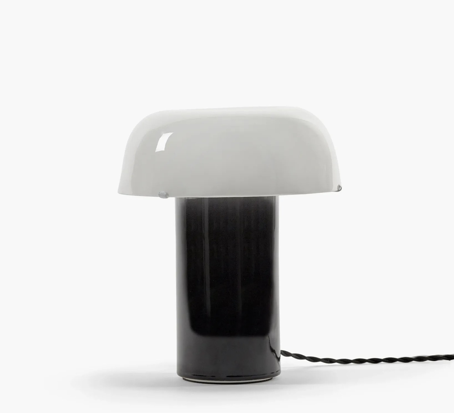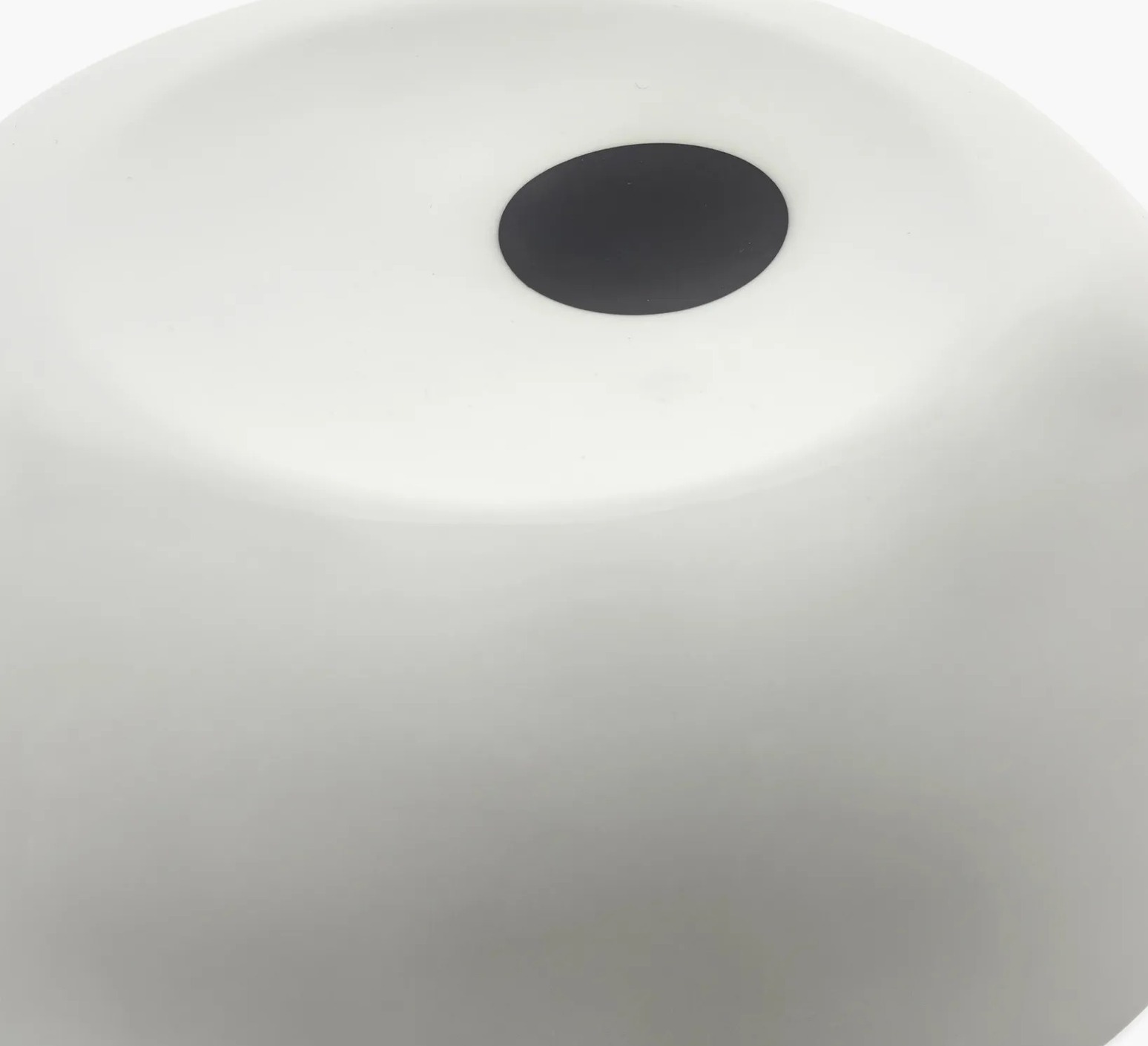 Die von Anita Le Grelle für Serax entworfene Celine N°2 "Terres de Rêves" spielt mit einem eleganten Kontrast: eine Basis aus massivem schwarzem Sandstein, über der ein Lampenschirm aus weißem "bone china"-Porzellan angebracht ist.