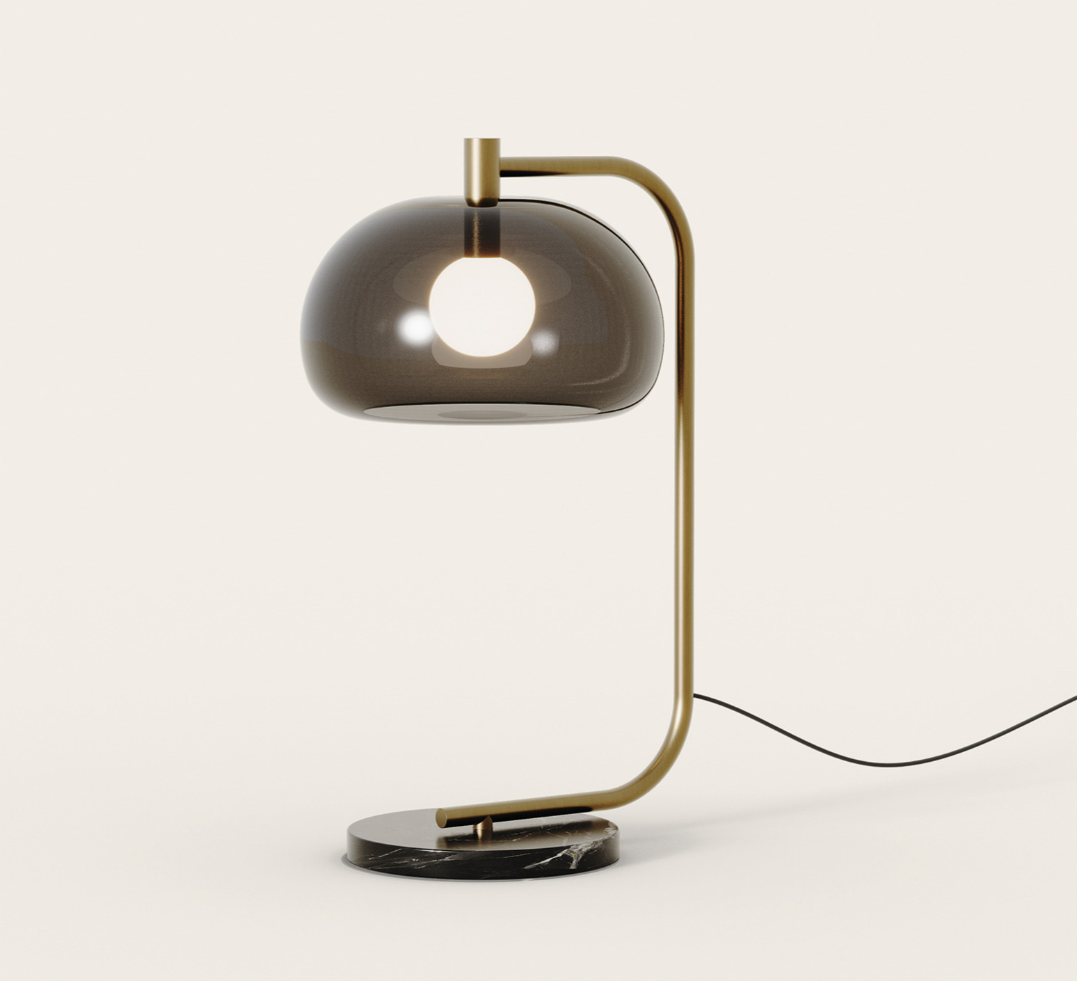 Die Lampe Cloud besticht durch ihre schlanke Struktur aus Metall mit Altmessing-Finish, die einen kugelförmigen Diffusor aus grauem Glas trägt, der sanft aufgehängt ist, während ihre Basis aus schwarzem Marmor einen mineralischen und luxuriösen Sitz verleiht. Das Ensemble bildet eine luftige und grafische Silhouette, die ideal ist, um ein Wohnzimmer, ein Schlafzimmer oder ein Büro zu veredeln, als Zusatzlicht neben einem Sessel, auf einer Konsole oder einem Nachttisch, wo sie eine gedämpfte und elegante Atmosphäre schafft.
