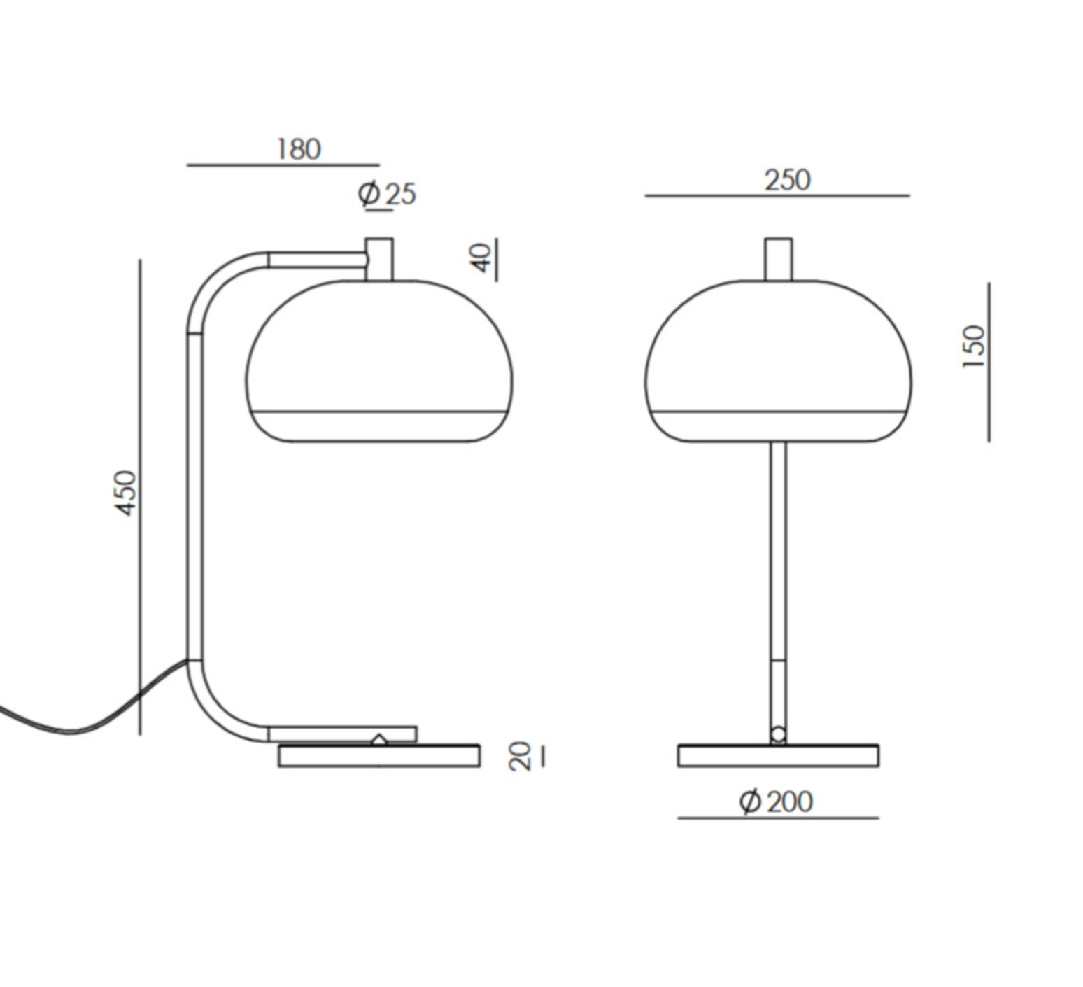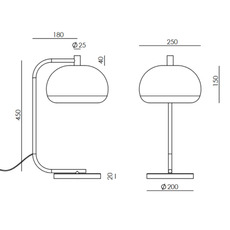 Die Lampe hat die Maße B25 cm x H45 cm und verfügt über ein Kabel mit integriertem Dimmer. Sie ist mit einer 5-W-G9-Glühbirne ausgestattet, die ein warmes Licht von 2700 K und 450 lm ausstrahlt und eine hochwertige, dimmbare 360°-Streulichtbeleuchtung mit fester Ausrichtung bietet.