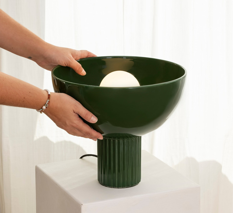 Exklusiv für Nedgis: Entdecken Sie die Tischlampe Coupo der jungen französischen Marke Oustao in einer exklusiven tannengrünen Farbe für Nedgis!