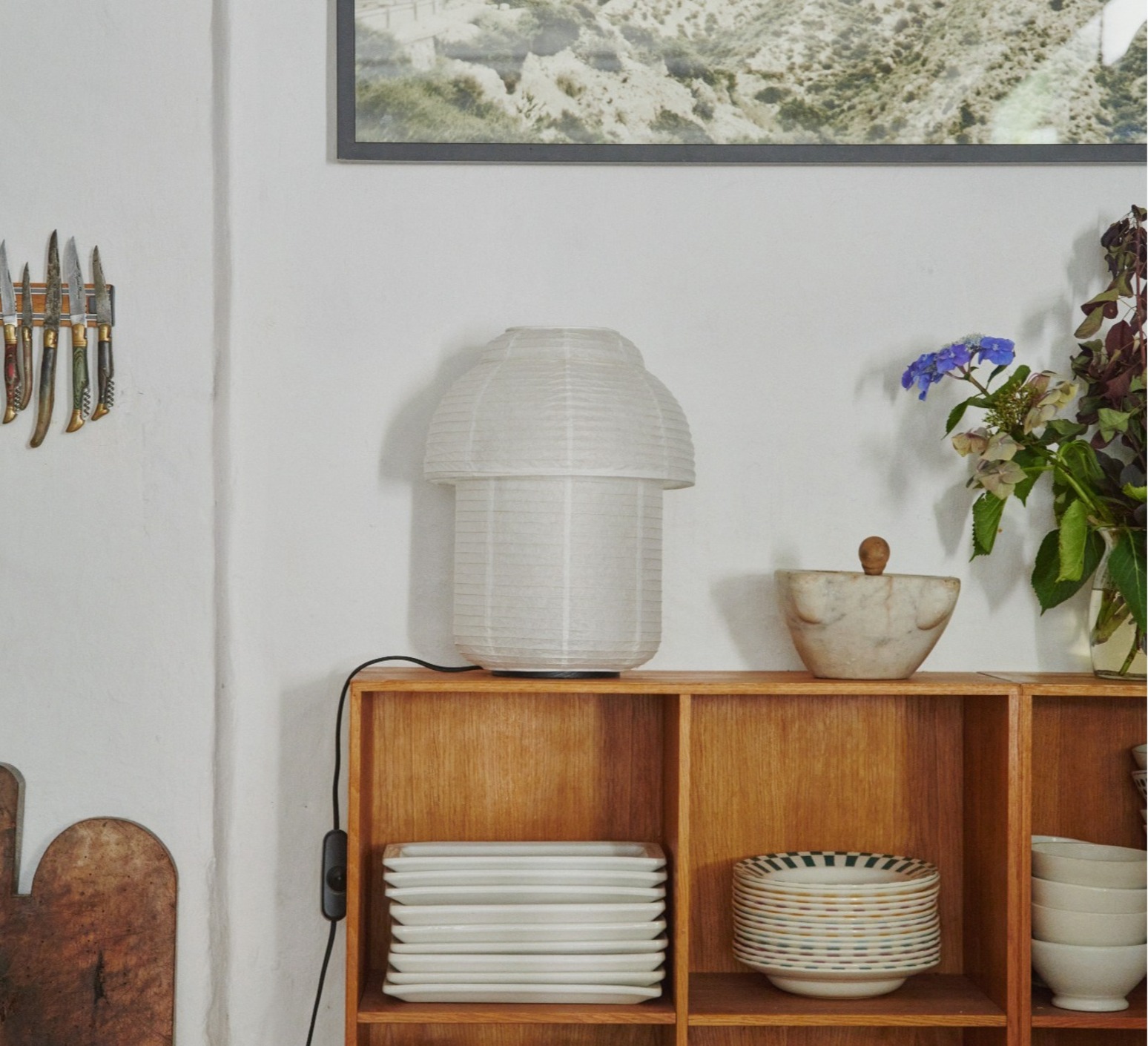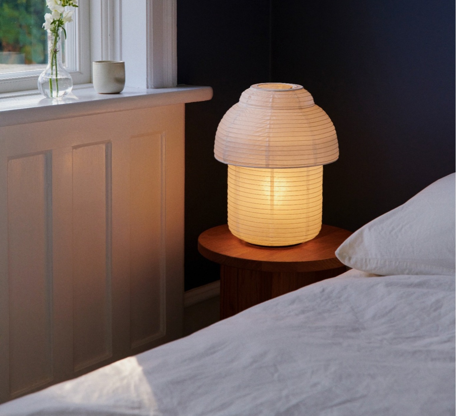 Inspiriert von traditionellen japanischen Laternen, vereint sie handwerkliche Zartheit und nordische Sensibilität. Die in Dänemark entworfene Kreation ist eine Hommage an die zeitlose Schönheit von Reispapier, einem poetischen und nachhaltigen Material.