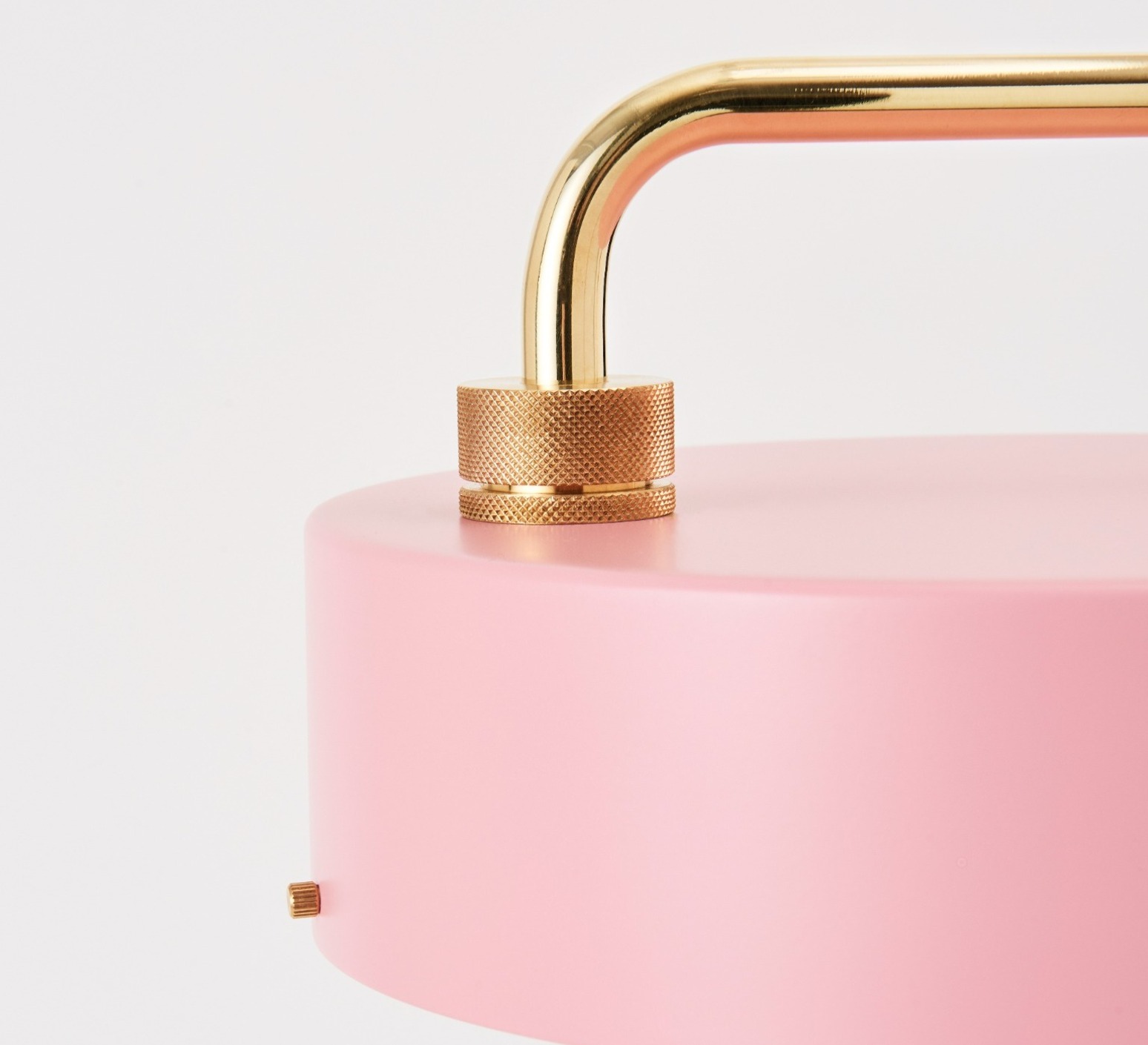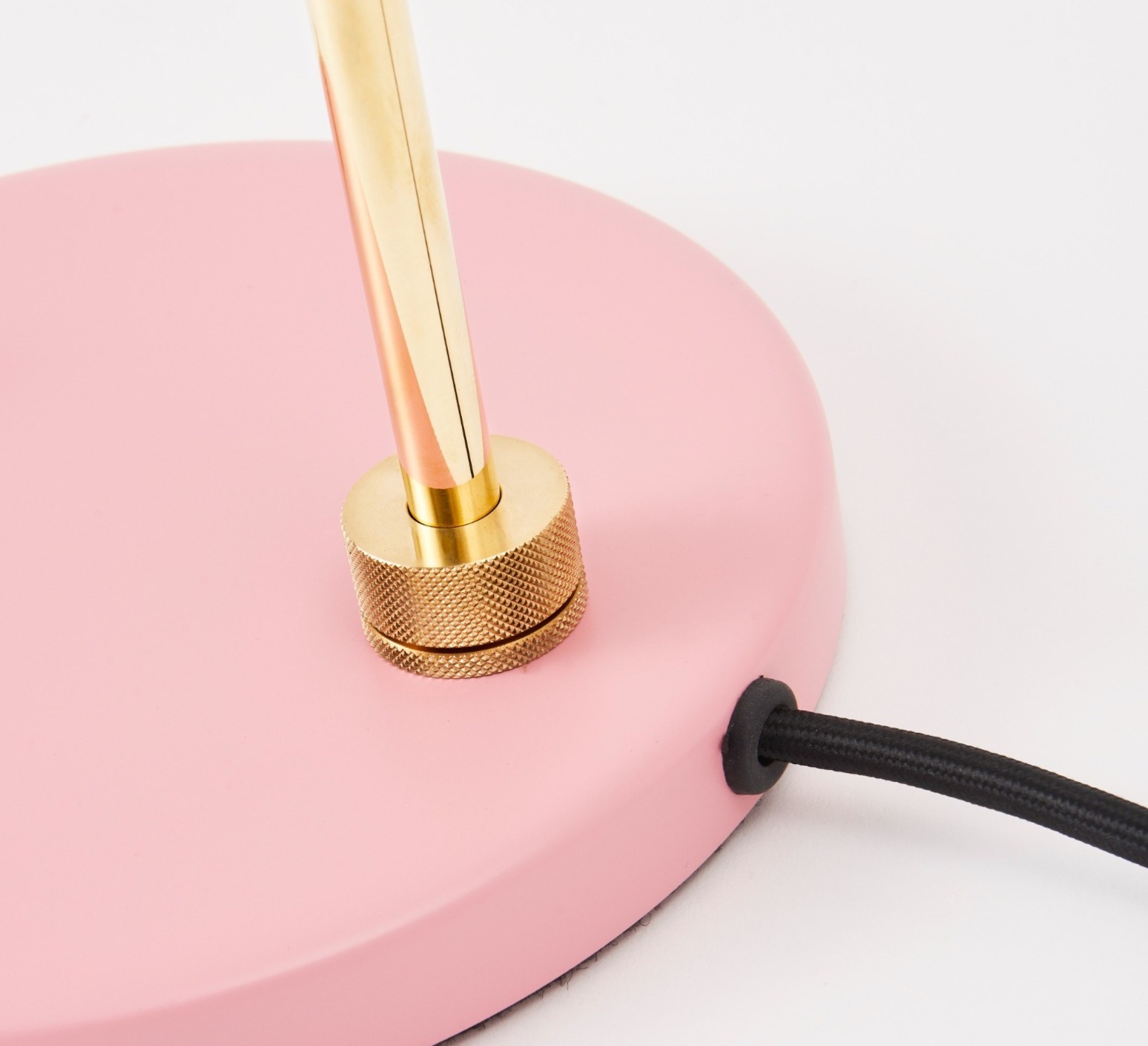 Inspiriert von den ikonischen Lampen der 1930er und 1950er Jahre, kombiniert Petite Machine hellrosa pulverbeschichteten Stahl mit Details aus poliertem Messing, um einen retro- und zeitgemäßen Look zu erzeugen. Mit ihrem um 180° drehbaren runden Schirm und dem um 90° drehbaren Arm lässt sich das Licht präzise ausrichten, egal ob auf einem Schreibtisch, einem Beistelltisch oder einer Konsole. Ihr schlichtes Aussehen, das durch den Glanz des Messings hervorgehoben wird, macht sie zu einer dekorativen Leuchte, die sowohl im eingeschalteten als auch im ausgeschalteten Zustand elegant wirkt und jedem Innenraum Wärme und Raffinesse verleihen kann.