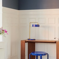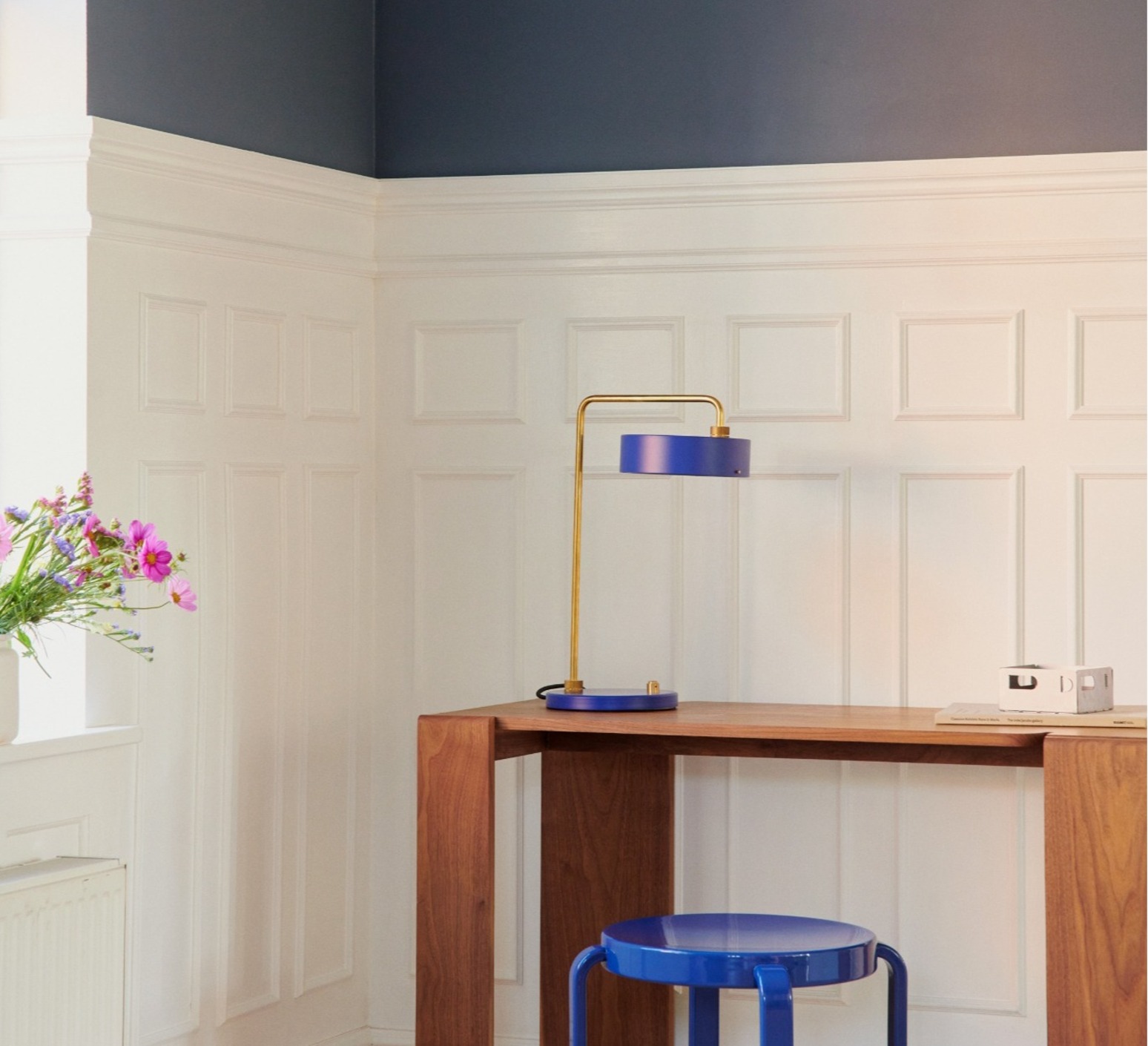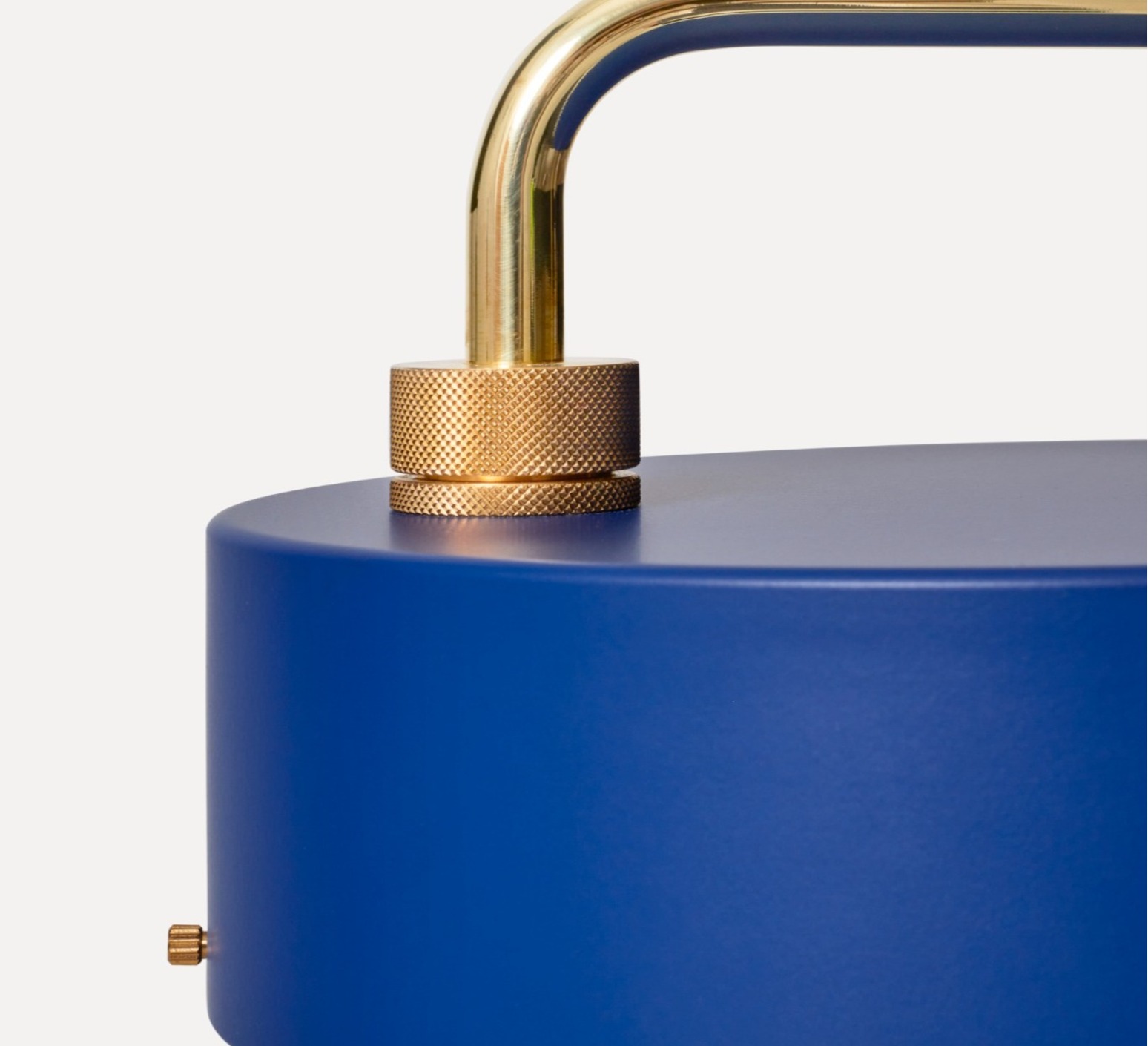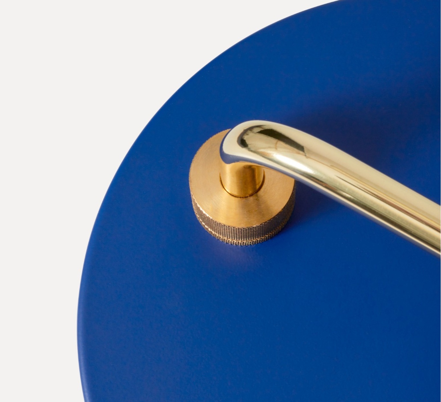 Inspiriert von den ikonischen Lampen der 1930er und 1950er Jahre, kombiniert Petite Machine königsblau pulverbeschichteten Stahl mit Details aus poliertem Messing, um einen retro- und gleichzeitig zeitgenössischen Look zu erzeugen. Mit ihrem um 180° drehbaren runden Schirm und dem um 90° drehbaren Arm lässt sich das Licht präzise ausrichten, egal ob auf einem Schreibtisch, einem Beistelltisch oder einer Konsole. Ihr schlichtes Aussehen, das durch den Glanz des Messings hervorgehoben wird, macht sie zu einer dekorativen Leuchte, die sowohl im eingeschalteten als auch im ausgeschalteten Zustand elegant wirkt und jedem Innenraum Wärme und Raffinesse verleihen kann.