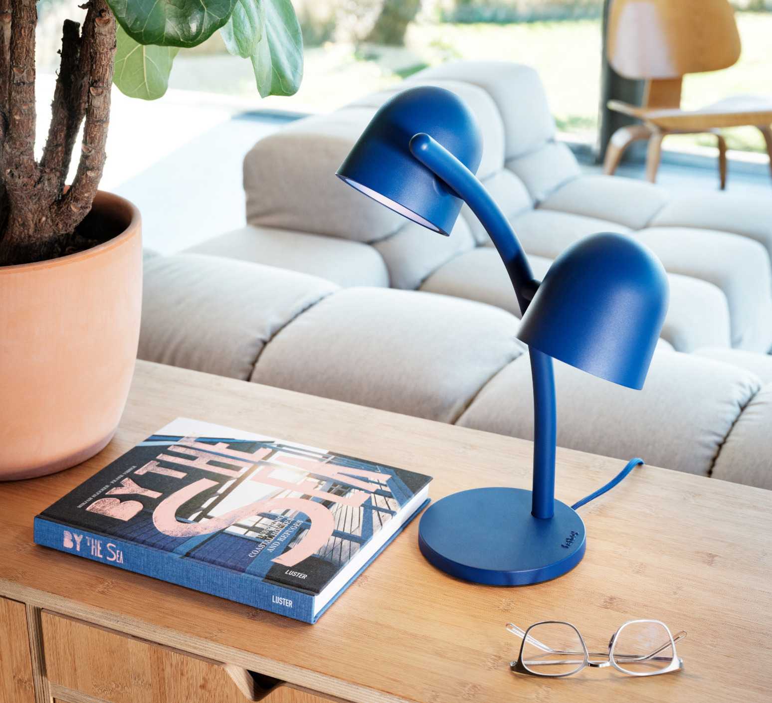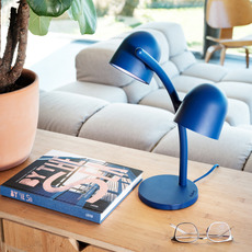 Die Marke Fatboy präsentiert ihre Tischlampenkollektion Little Lebow in einer eleganten blauen Farbe.