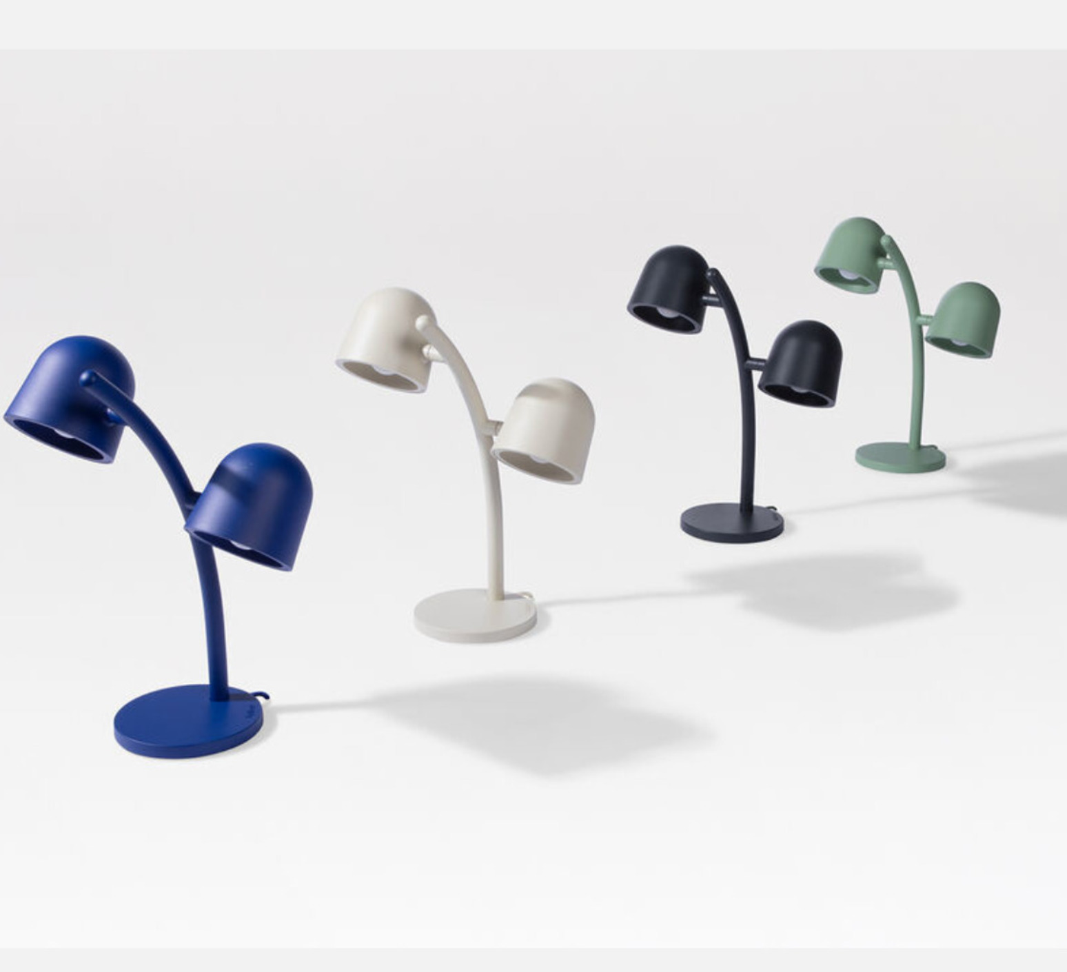 Die Ästhetik der Lampe Little Lebow zeichnet sich durch ihr modernes Design aus. Ihr Gestell aus pulverbeschichtetem Stahl und ihre Lampenschirme aus Aluminium bieten einen robusten Look, der dennoch raffiniert ist. Die feine, pudrige Textur verleiht der Lampe einen hochwertigen Touch. Stellen Sie die Lampe auf einen Beistelltisch, einen Schreibtisch oder eine Konsole und schaffen Sie so eine warme und individuell anpassbare Lichtatmosphäre in Ihrem Wohnzimmer, Schlafzimmer oder Arbeitsbereich.