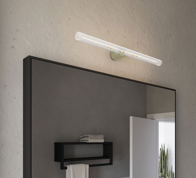 Dieses Modell ist mit einer patentierten Esse14-Fassung ausgestattet, die mit einer 30 oder 50 cm langen S14d LED-Glühbirne (nicht im Lieferumfang enthalten) kompatibel ist. Es bietet eine IP44-Wasserdichtigkeit, die für Feuchträume oder überdachte Außenbereiche geeignet ist. Max. Leistung 20W LED, Spannung 220-240V, Klasse II. Abmessungen Ø4,7 cm x H5,8 cm. Hinweis: Die Schutzart IP44 wird nur mit den 30- und 50-cm-Glühbirnen gewährleistet. Schrauben und Dübel nicht im Lieferumfang enthalten. Feste und aufgesetzte Montage. Nicht dimmbar.