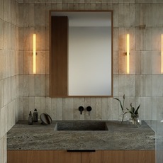 Die Wandleuchte Esse zeichnet sich durch ihre geschwungenen Linien und ihr kompaktes Format aus, das eine Wandbefestigung ohne Pavillon ermöglicht und so für ein schlichtes und zeitgemäßes Erscheinungsbild sorgt. Ihre Ausführung in Wenge-Holzoptik erinnert an die Wärme und Eleganz des skandinavischen Stils und ist ideal, um einem Badezimmer, einem Eingangsbereich oder einem Arbeitsbereich Wärme zu verleihen. In Kombination mit einer 30 cm oder 50 cm langen linearen LED-Lampe S14d erzeugt sie grafische und individuelle Lichtspiele und hebt gleichzeitig die architektonischen Details einer Inneneinrichtung hervor.