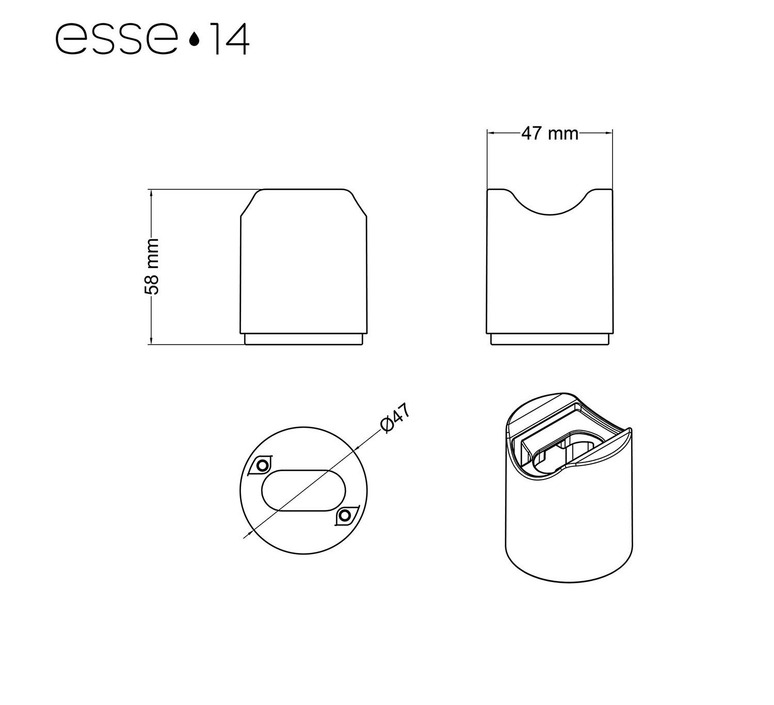 Dieses Modell ist mit einer patentierten Esse14-Fassung ausgestattet, die mit einer 30 oder 50 cm langen S14d LED-Glühbirne (nicht im Lieferumfang enthalten) kompatibel ist. Es bietet eine IP44-Wasserdichtigkeit, die für Feuchträume oder überdachte Außenbereiche geeignet ist. Max. Leistung 20W LED, Spannung 220-240V, Klasse II. Abmessungen Ø4,7 cm x H5,8 cm. Hinweis: Die Schutzart IP44 wird nur mit den 30- und 50-cm-Glühbirnen gewährleistet. Schrauben und Dübel nicht im Lieferumfang enthalten. Feste und aufgesetzte Montage. Nicht dimmbar.