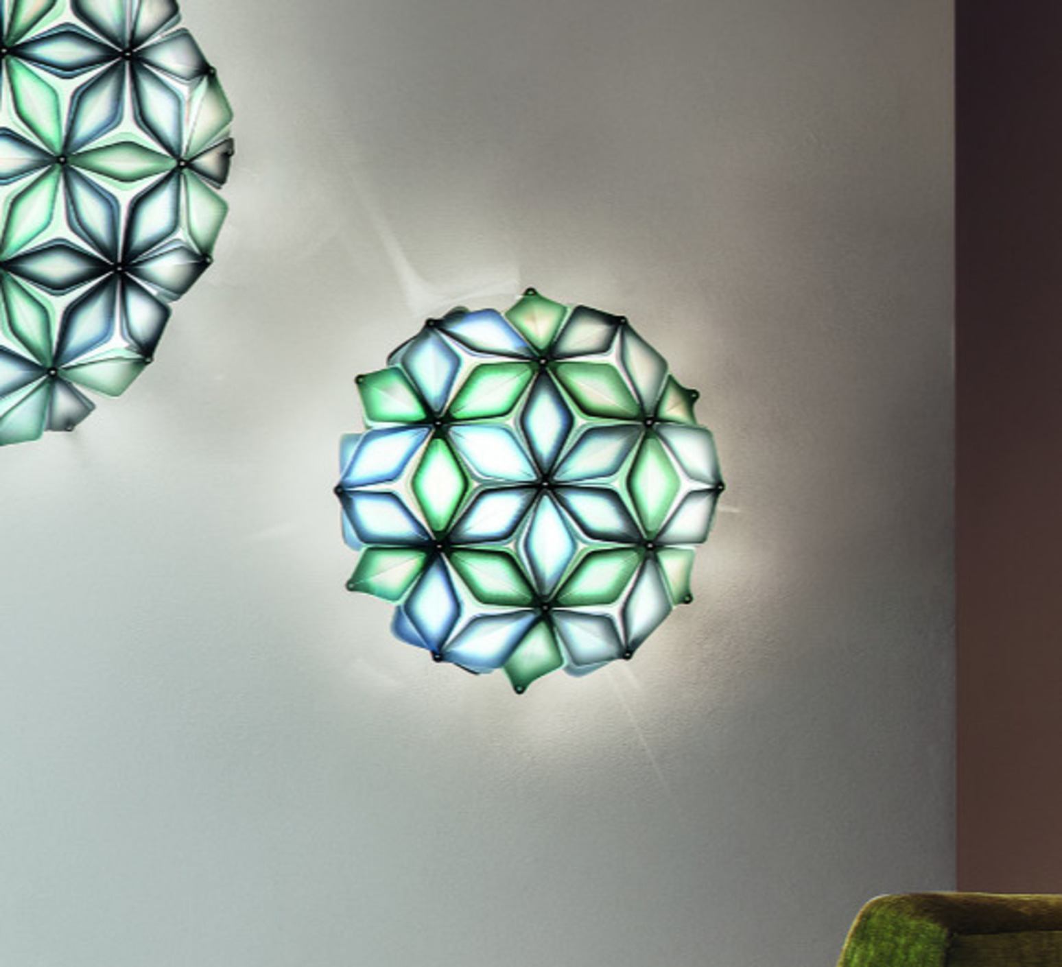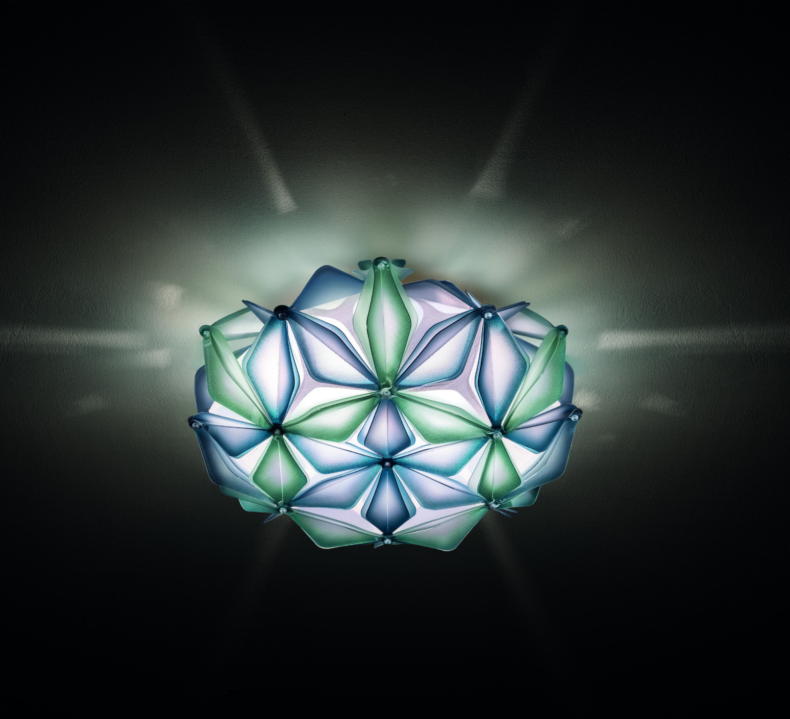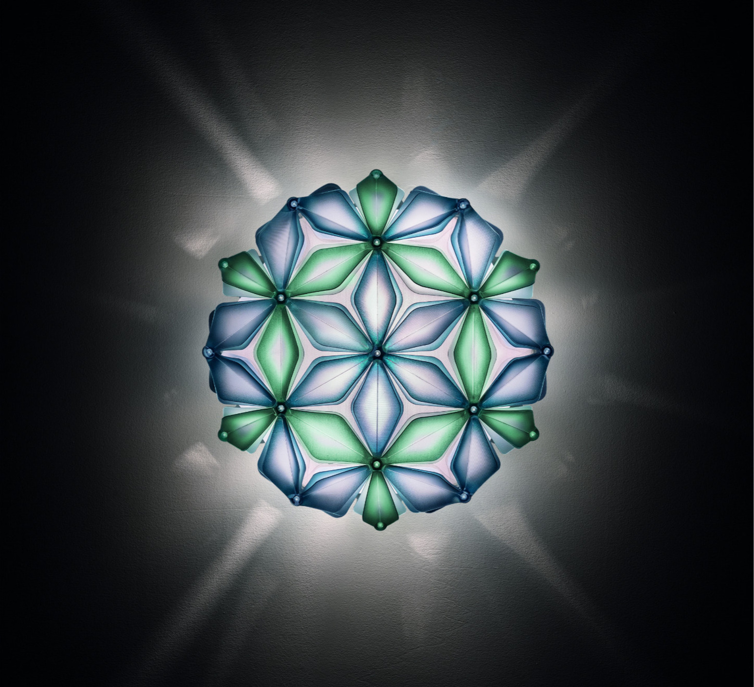 Die Blume des Lebens ist in lebhaften Farbkombinationen erhältlich, die an Erneuerung erinnern. Dank ihres Magnetsystems ist sie leicht zu installieren und zu pflegen, und dank ihres mehrfach eckigen Designs eignet sie sich perfekt für die Anbringung an der Decke oder an der Wand. Sie ist in Mini-, Mittel- und Großgröße und in fünf verschiedenen Farbkombinationen erhältlich.