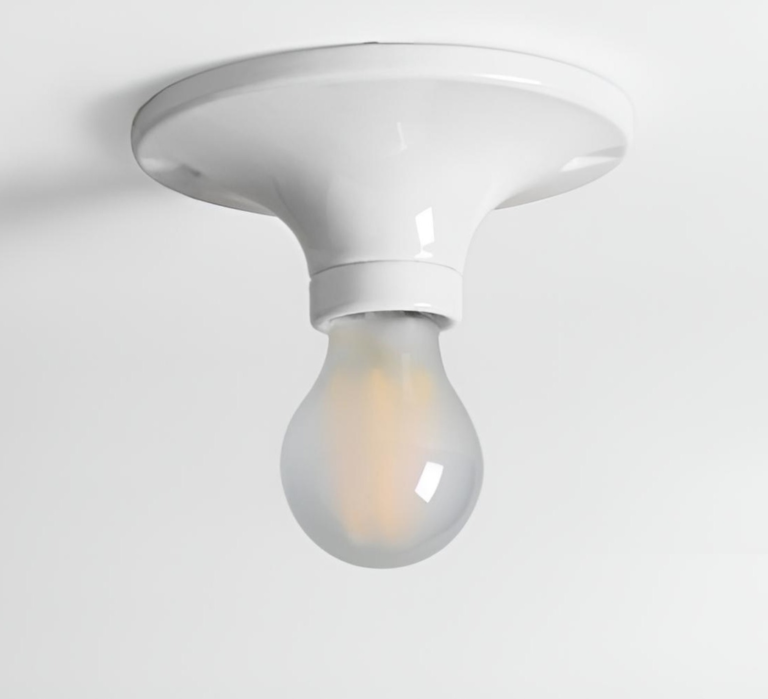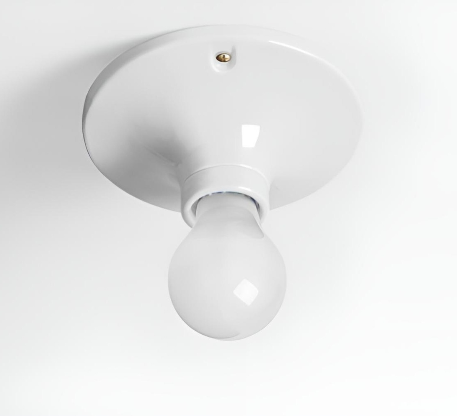 Dank ihrer schlichten Ästhetik und der weißen Oberfläche fügt sich diese Leuchte harmonisch in ein zeitgenössisches, schlichtes oder skandinavisches Interieur ein. Sie kann als Wand- oder Deckenleuchte verwendet werden, um einen Flur, ein Schlafzimmer oder ein Esszimmer zu beleuchten, ohne den Raum optisch zu überladen. Durch ihre runde Form und das edle Material fügt sie sich in eine Einrichtung ein und setzt gleichzeitig einen subtilen dekorativen Akzent. Das Fehlen von Ornamenten lässt das Licht durch das Porzellan spielen und schafft eine sanfte und raffinierte Atmosphäre.