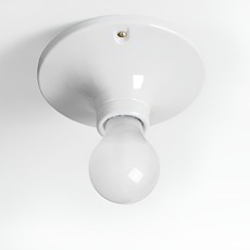 Die Leuchte hat einen Durchmesser von 15 cm und eine Tiefe von 6,3 cm bei dieser runden Version aus weißem Porzellan. Ihre Lichtquelle (1 x E27) ist nicht im Lieferumfang enthalten, aber als unverzichtbares Zubehör erhältlich.