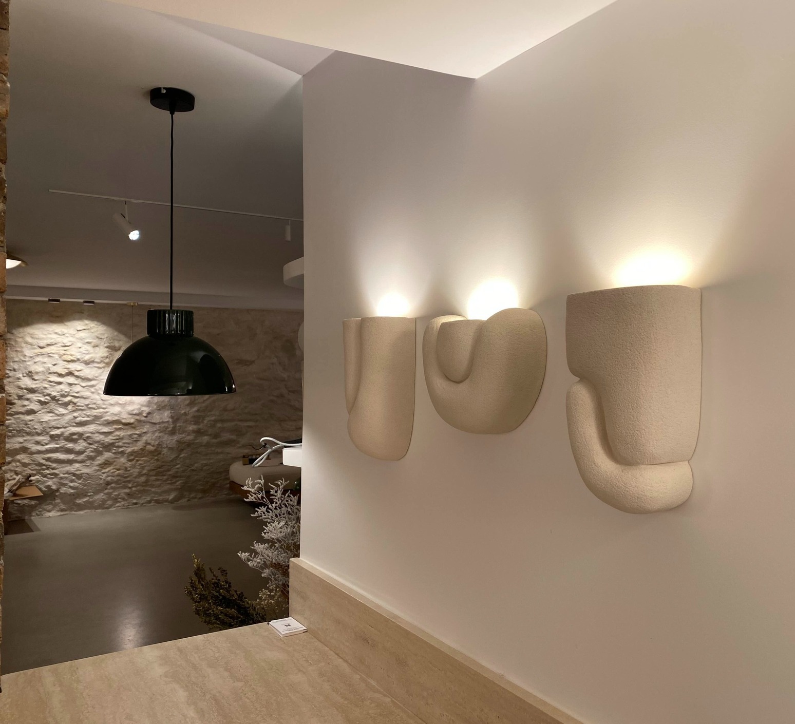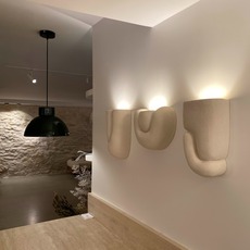 Am Kopfende eines Bettes, in einem Flur oder einem Wohnzimmer platziert, schafft sie eine diskrete, aber markante visuelle Präsenz. Da jedes Stück individuell geformt wird, machen leichte Abweichungen jedes Exemplar zu einem Unikat.