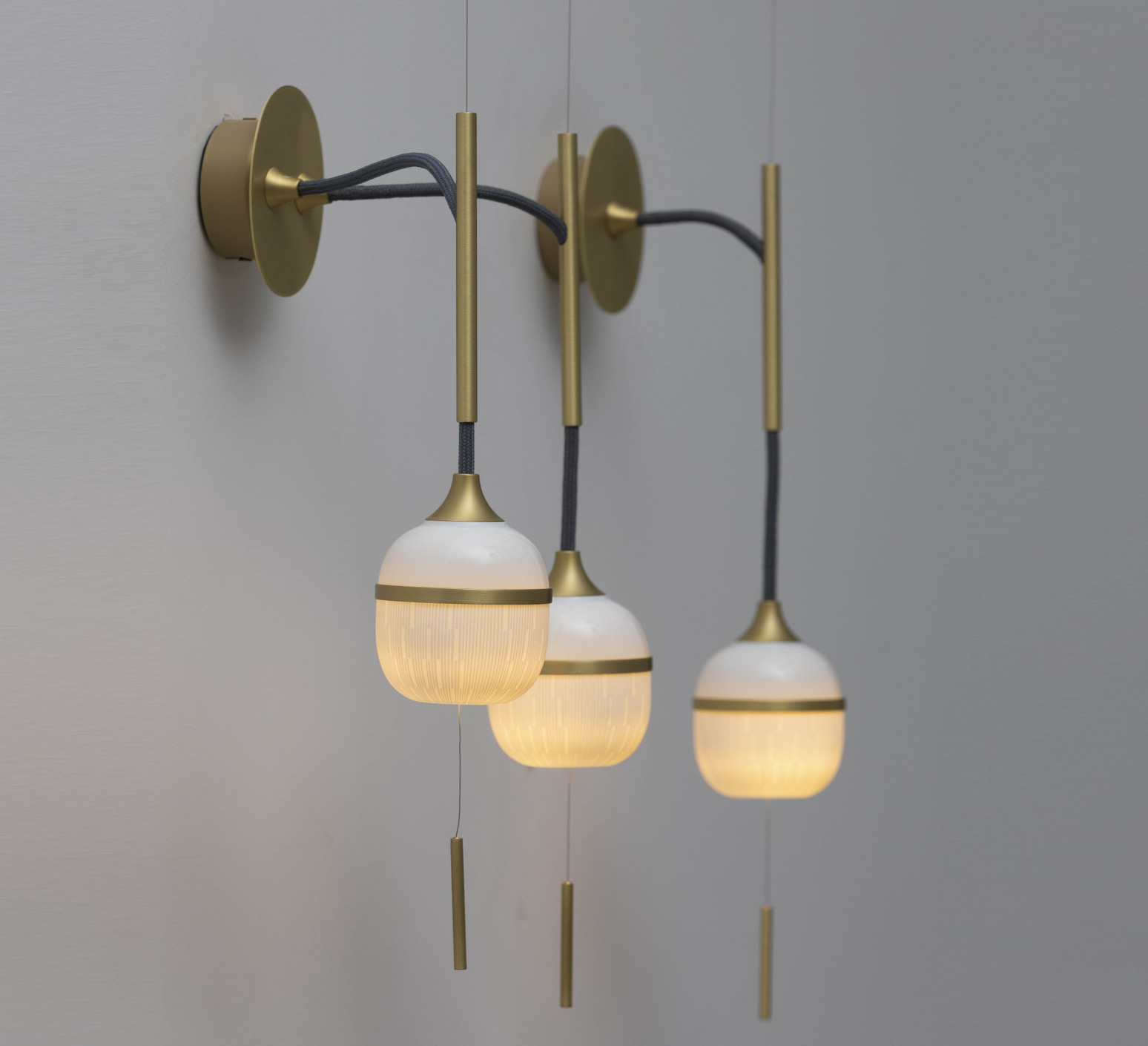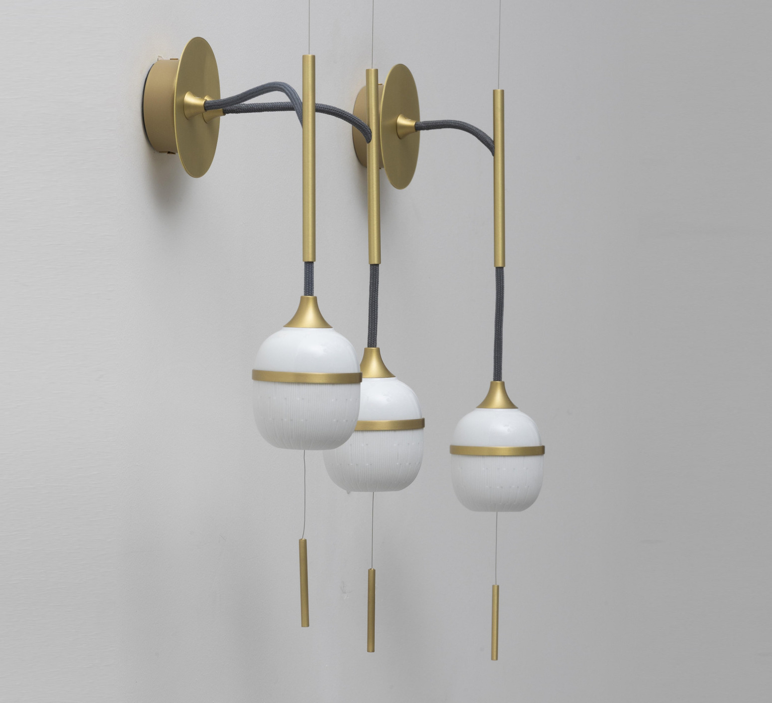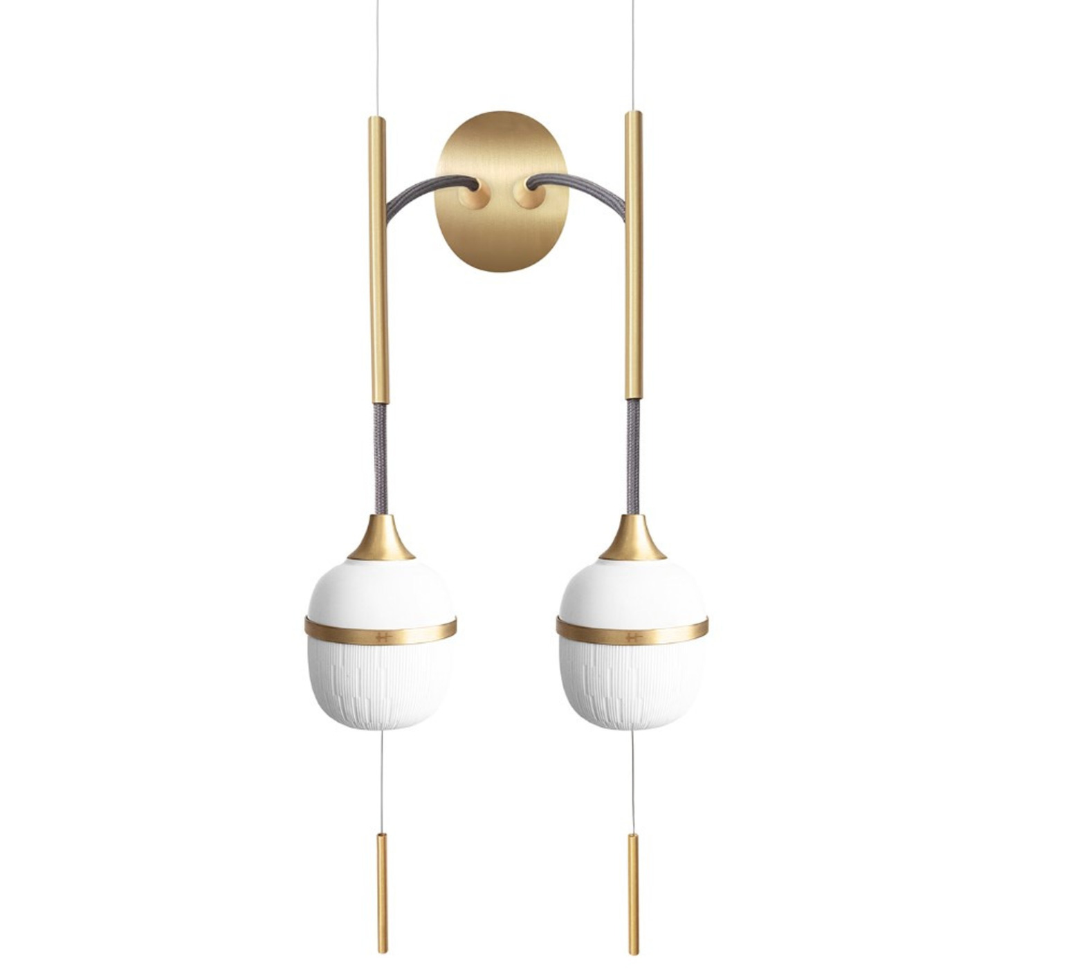 Wandleuchte, Duo mittel Kaolinblüte, weiß, messing und grau, B22,6cm, H52,5cm - Designheure