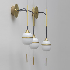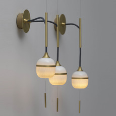 In ästhetischer Hinsicht besticht die Wandleuchte durch die elegante Vertikalität ihrer Porzellanelemente, die an die Zartheit eines Glockenspiels oder eines Regenstabs erinnern. Die Ausführungen aus gebürstetem Messing verleihen der Leuchte einen kostbaren, luftigen Touch und machen sie zu einem echten Dekorationsobjekt. Ideal für ein Wohnzimmer, einen Flur oder ein Schlafzimmer, sublimiert sie die Wände mit Poesie und passt sowohl zu einem raffinierten Interieur als auch zu einer zeitgenössischen Dekoration.