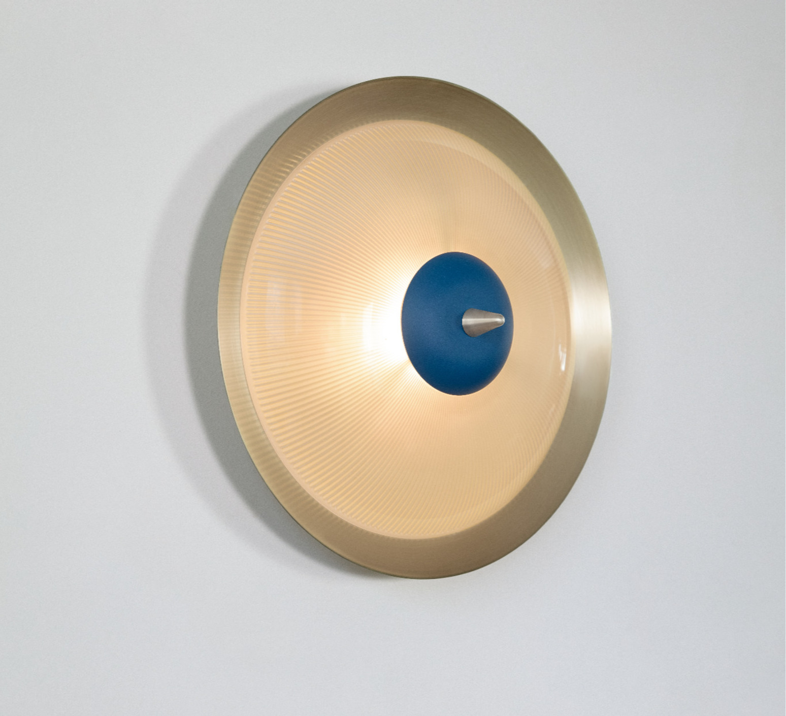 Diese Wandleuchte mit ihrem raffinierten Design, das satiniertes Nickel und Blau kombiniert, wird Ihrem Zuhause einen Hauch von Raffinesse verleihen.