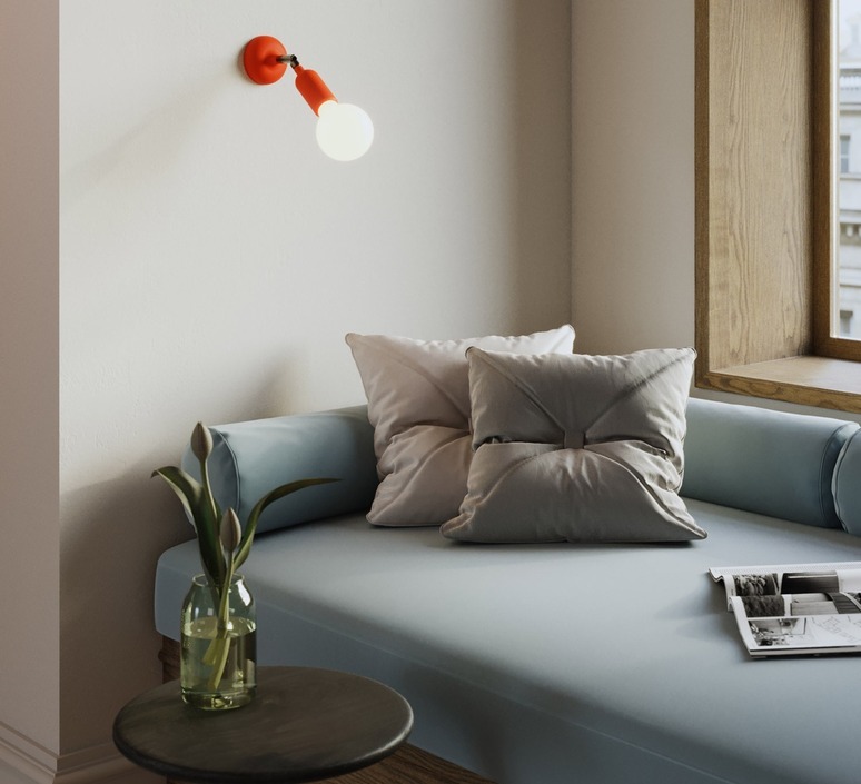 Die orangefarbene Fermaluce-Wandleuchte aus Silikon besticht durch ihr minimalistisches Aussehen und ihre visuelle Ausgewogenheit. Ihre Ausführung fügt sich harmonisch in zeitgenössische, skandinavische oder architektonische Interieurs ein. Dank des verstellbaren Kugelgelenks kann die Lampe bis zu 90° geneigt und um 315° gedreht werden und bietet somit eine große Freiheit bei der Ausrichtung. Sie eignet sich ideal für einen Flur, ein Wohn- oder Schlafzimmer und strahlt ein weiches, gleichmäßiges 360°-Licht aus, das perfekt ist, um eine gemütliche und warme Atmosphäre zu schaffen.