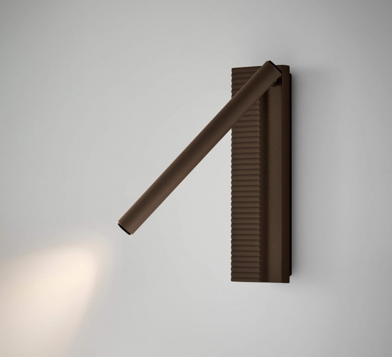 Ihre schlichte Silhouette lässt ein weiches Licht austreten, das sich den Linien der Wandleuchte anpasst und so einen organischen und beruhigenden Effekt erzeugt. Sie besteht aus einem dünnen, verstellbaren Rohr, das die Lichtquelle umschließt und auf einer gewellten Basis ruht. Sie wurde so konzipiert, dass sie sowohl leistungsstark als auch anpassungsfähig ist, und verbindet technische Funktionalität mit visueller Poesie.