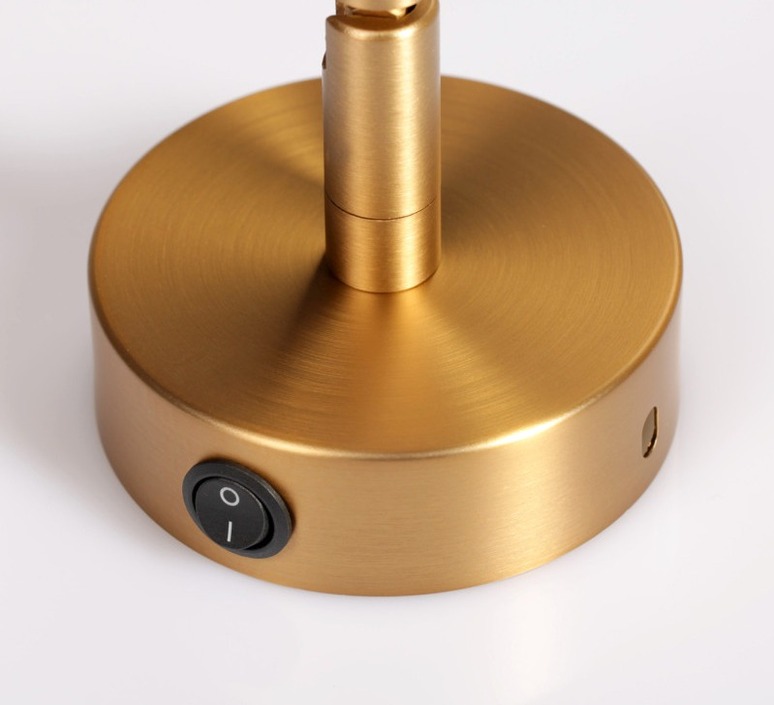 Die Wandleuchte hat einen Durchmesser von 13 cm und eine Höhe von 10 cm. Die flache Led-Glühbirne E27 mit einer Leistung von 3W ist nicht im Lieferumfang enthalten, wird aber für die ordnungsgemäße Funktion der Leuchte empfohlen. Die Wandleuchte ist mit einem Gelenkarm und einem Schalter an der Basis ausgestattet. Nicht dimmbar.