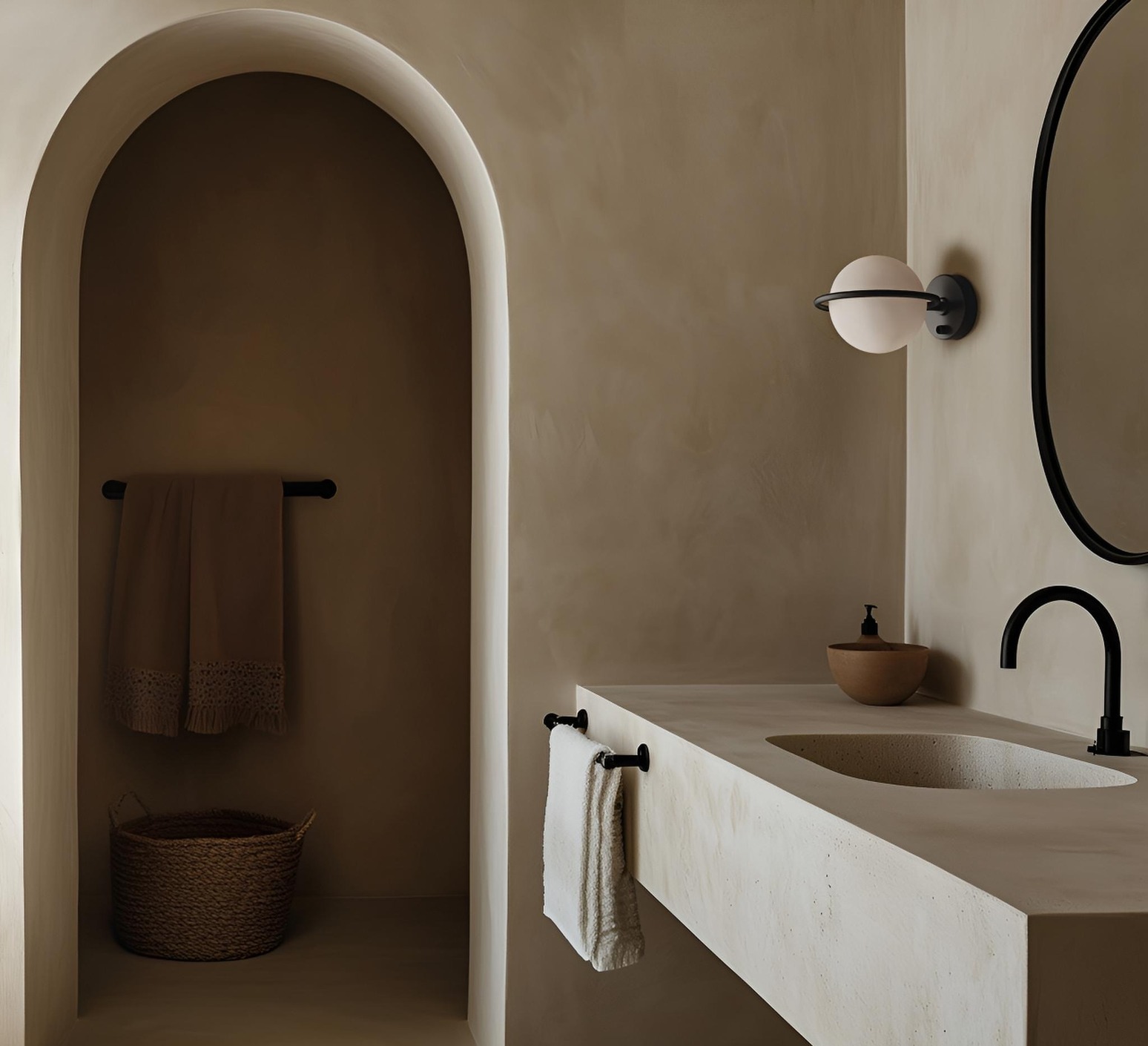Diese Kombination aus organischen Formen und edlen Materialien evoziert eine Leuchte, die das Licht wie einen poetischen Punkt an der Wand aufzuhängen scheint und eine warme und elegante Präsenz schafft.