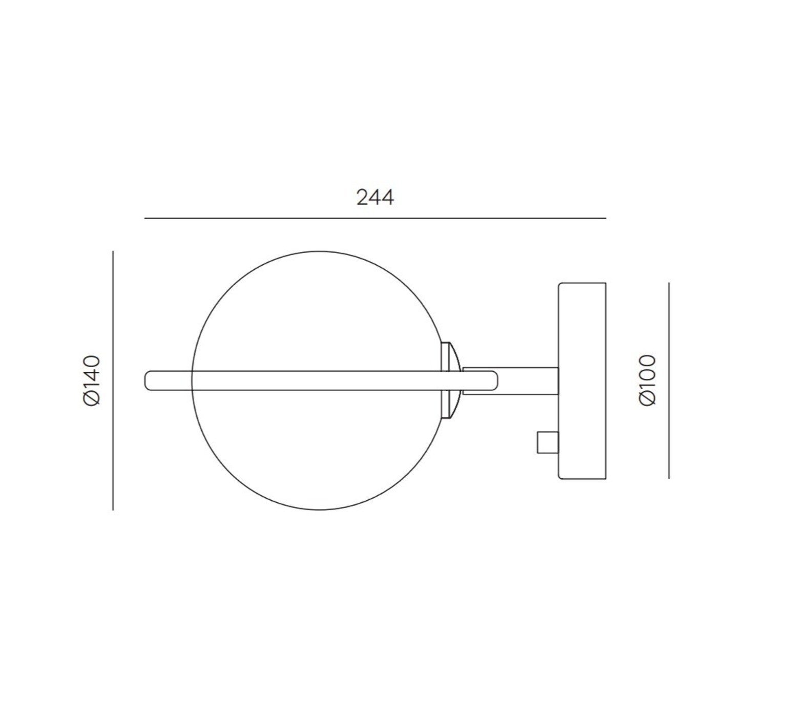 Wandleuchte mit Arm, Abbacus A1258, mattschwarz, Opalglas, B14cm, H14cm - Aromas del Campo