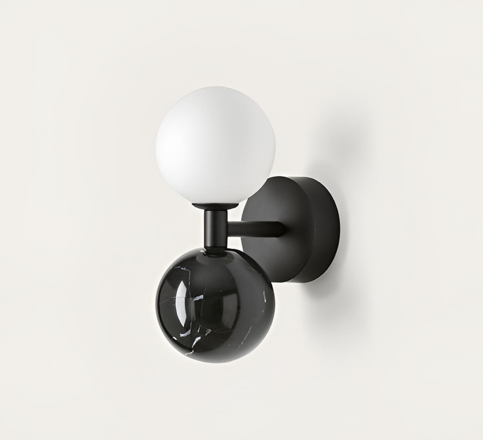 Die Wandleuchte wird mit einer im Lieferumfang enthaltenen 5-W-G9-LED-Glühbirne geliefert, die ein warmweißes Licht mit 2700 K und ca. 450 Lumen erzeugt und für eine weiche, stimmungsvolle Helligkeit sorgt. Ihr Gestell kombiniert Metall, Marmor und Opalglas, um eine edle und zugleich ästhetische Wirkung zu erzielen.