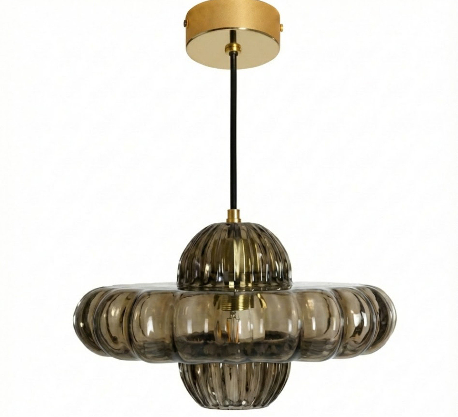 Hängeleuchte,Toupi, Rauchglas und goldfarbenes Messing, Ø30 cm, H17cm - Margaux Keller Collections