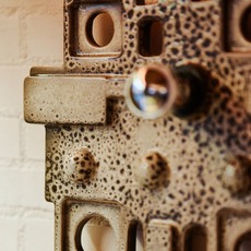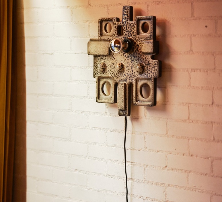 Die aus Sandstein gefertigte Wandleuchte zeichnet sich durch ihren Brutalismus und das skulpturale Design aus, die von den 70er Jahren inspiriert sind. Dank ihres 2 m langen schwarzen Kabels lässt sie sich flexibel anbringen und sorgt für eine diffuse 360-Grad-Beleuchtung. Sie wird perfekt sein, um eine warme und einladende Atmosphäre in Ihrem Wohnbereich zu schaffen.
