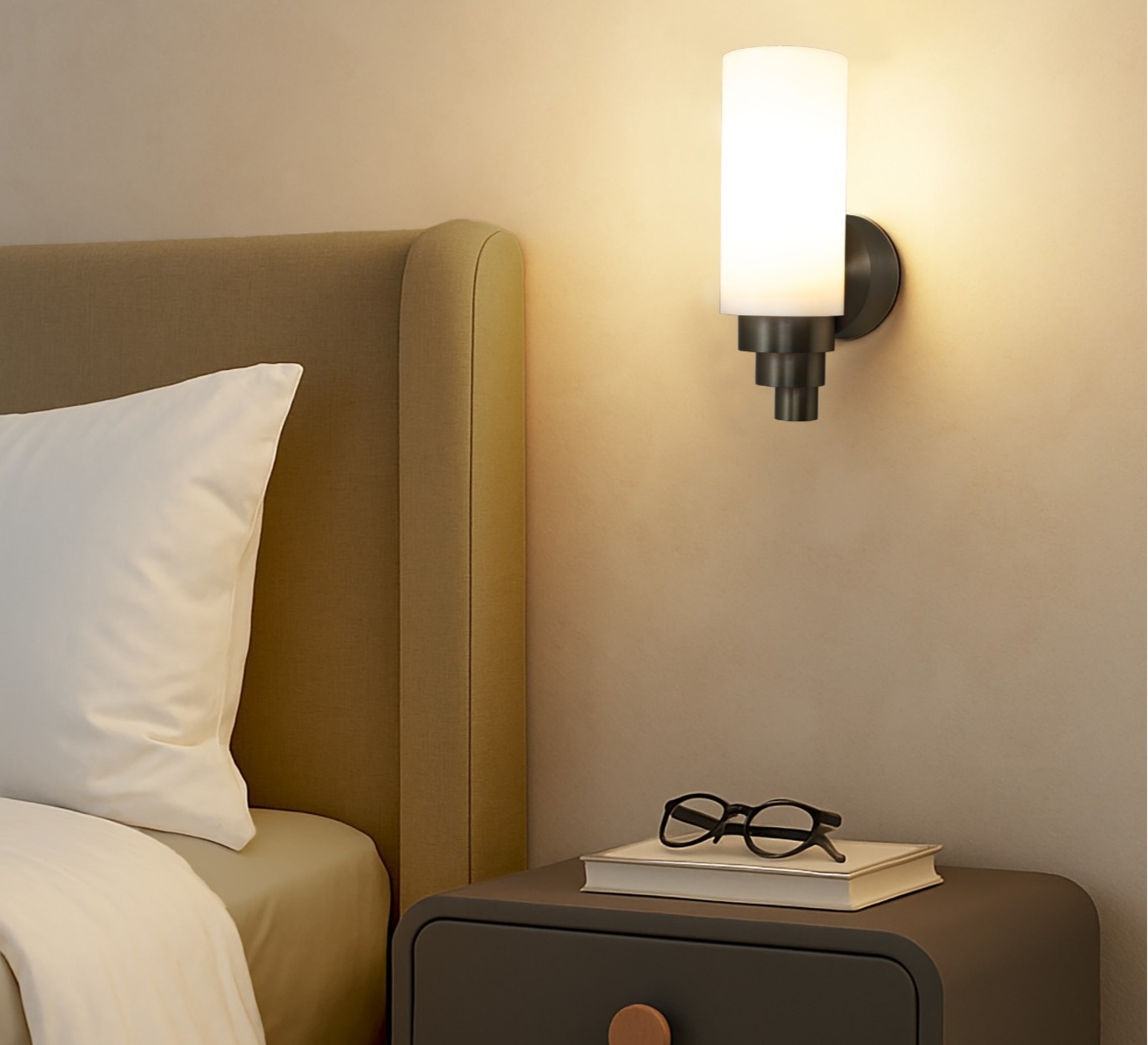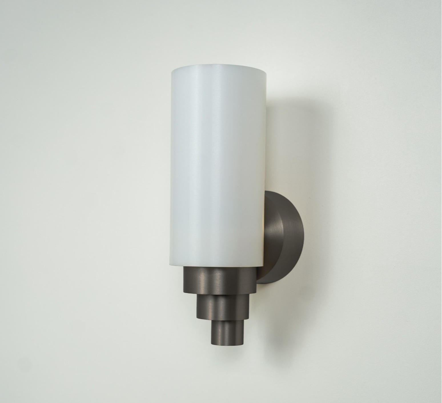 Ihr Design beruht auf einer minimalistischen Architektursprache, bei der das Ineinandergreifen von Messingrohren mit sorgfältig durchdachten Proportionen einen strukturierten und eleganten Rhythmus von Volumen bildet. Der zylindrische Diffusor aus opalem Polycarbonat macht das Licht weicher und bewahrt gleichzeitig eine diskrete grafische Präsenz. Ob am Kopfende eines Bettes, in einem Eingangsbereich oder in einer Reihe in einem Korridor, Scala führt eine raffinierte Vertikalität und ein subtiles Schattenspiel ein. Dekorative Anekdote: Seine satinierte Graphitoberfläche passt besonders gut zu natürlichen Materialien wie Leder oder dunkler Eiche und verstärkt die sanfte Lichtstreuung.